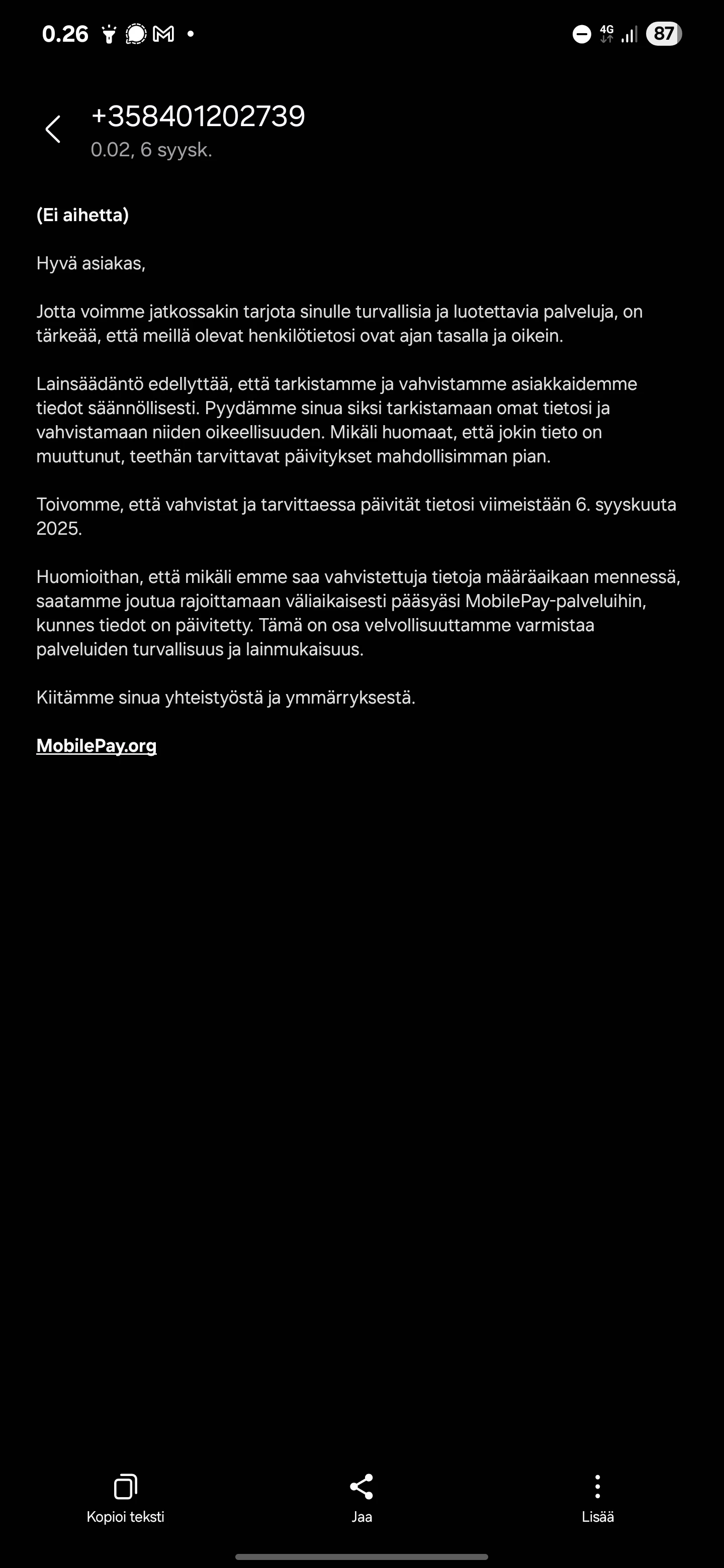 Lopulta täyden varmuuden viestin aitoudesta voit saada olemalla yhteydessä yritykseen sen virallisia yhteydenottokanavia pitkin.
