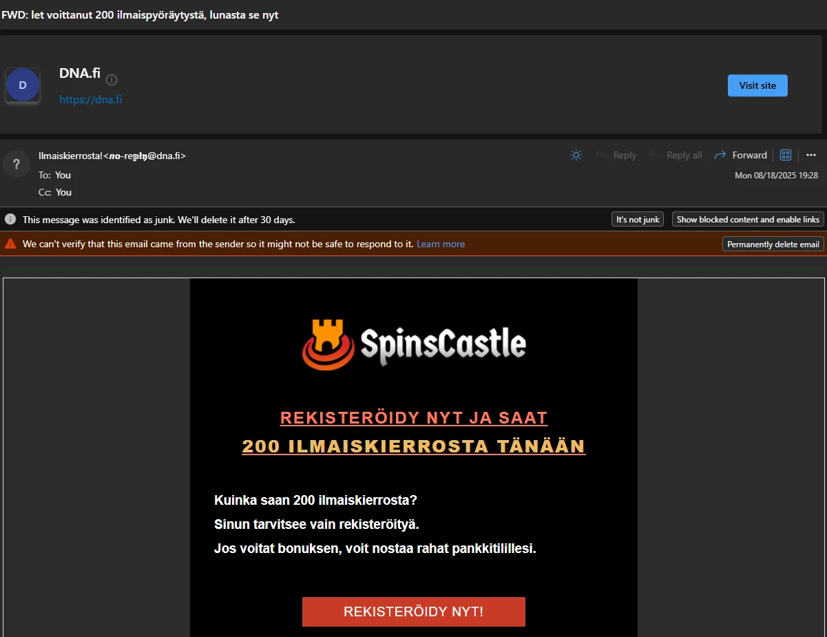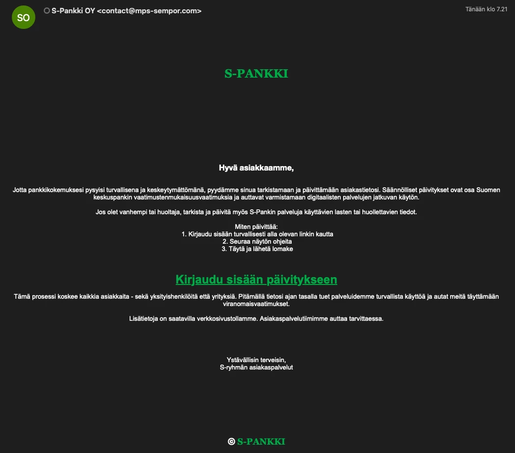 Vastaako viestin sisältö odotuksia siitä, millaiseen viestintään olet kyseisen yrityksen kohdalla tottunut. Jos viesti sisältää kirjoitusvirheitä tai on huonoa suomea, niin kannattaa suhtautua varauksella.