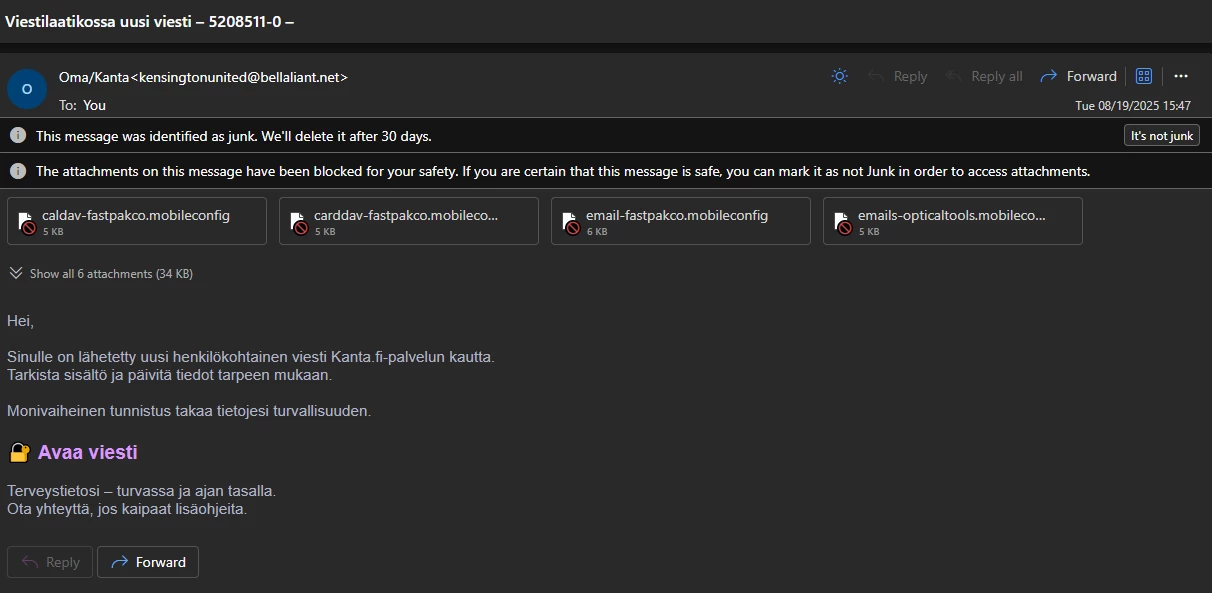 Odotitko yhteydenottoa vai tuliko viesti yllätyksenä. Tarkista lähettäjän sähköpostiosoite tai puhelinnumero, oletko täysin varma lähettäjän aitoudesta.