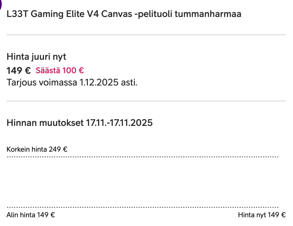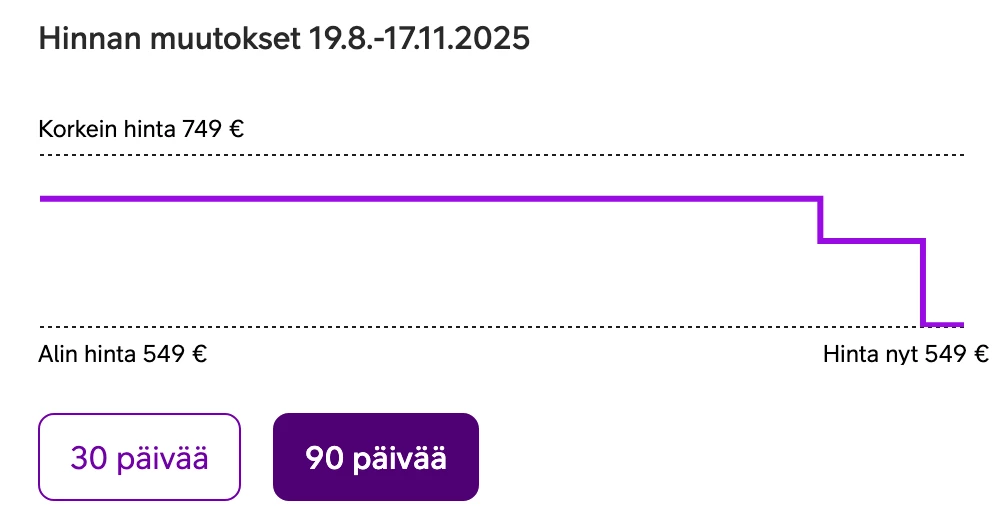 Itse kyttään iPhone 15 tarjousta. Kilpaileva yritys aloitti jo viikko sitten hinnalla 549€.