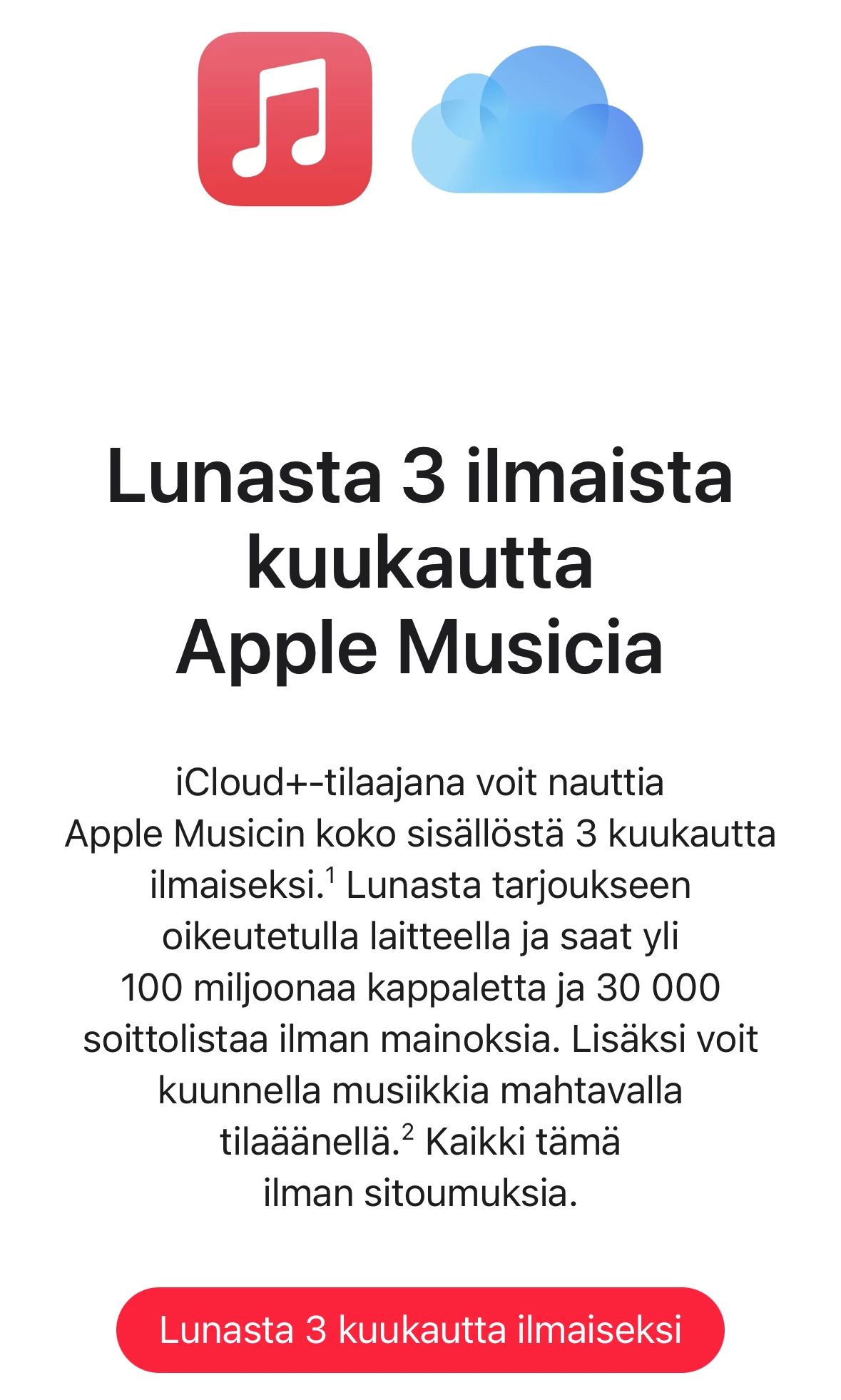 Aihe on minulle nyt ajankohtainen. Juteltiin kavereiden kanssa hiljattain Whatsapissa Apple Musicista ja tänään sain Applelta sähköpostia, että nyt olisi Apple Music 3kk 0€ 😀
