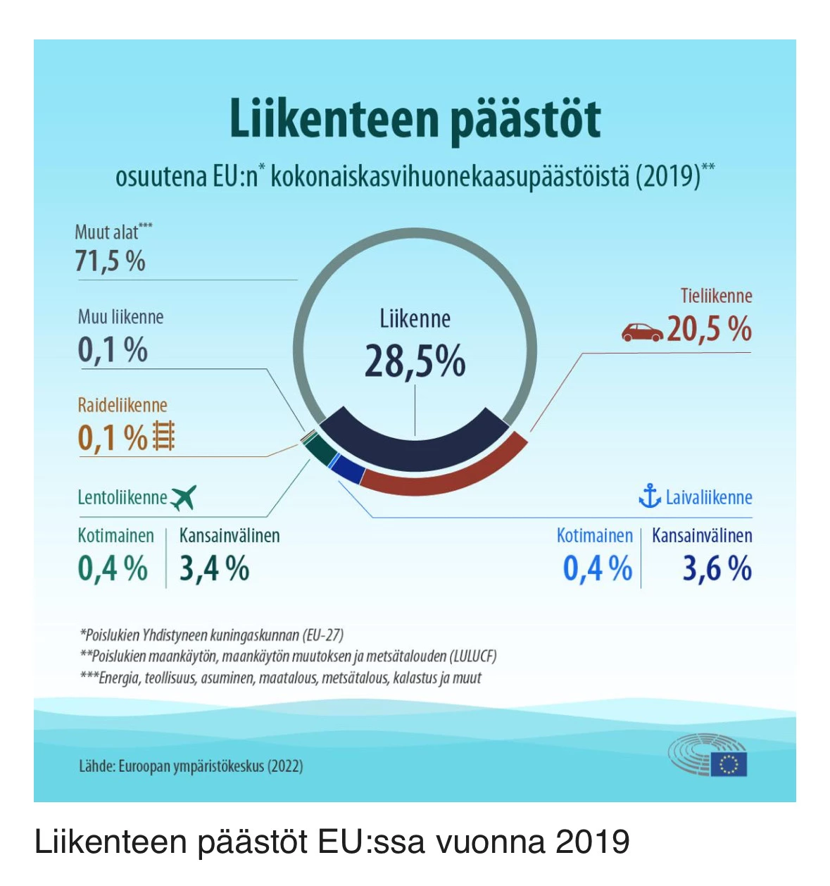 Itsekin olen vähän vapaa-ajan lentämistä vastaan mutta lentoliikenteen kokonaisvaikutus hiilidioksidipäästöihin on aika pieni. Tässä tilastoa EU:n osalta vuodelta 2019: