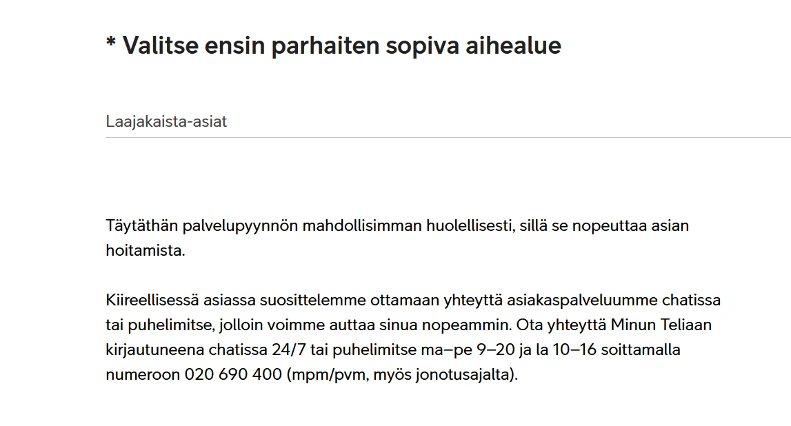 Tuossa viestiketjussa homma oli ratkennut telian henkilön tekemällä häiriöilmoituksella.