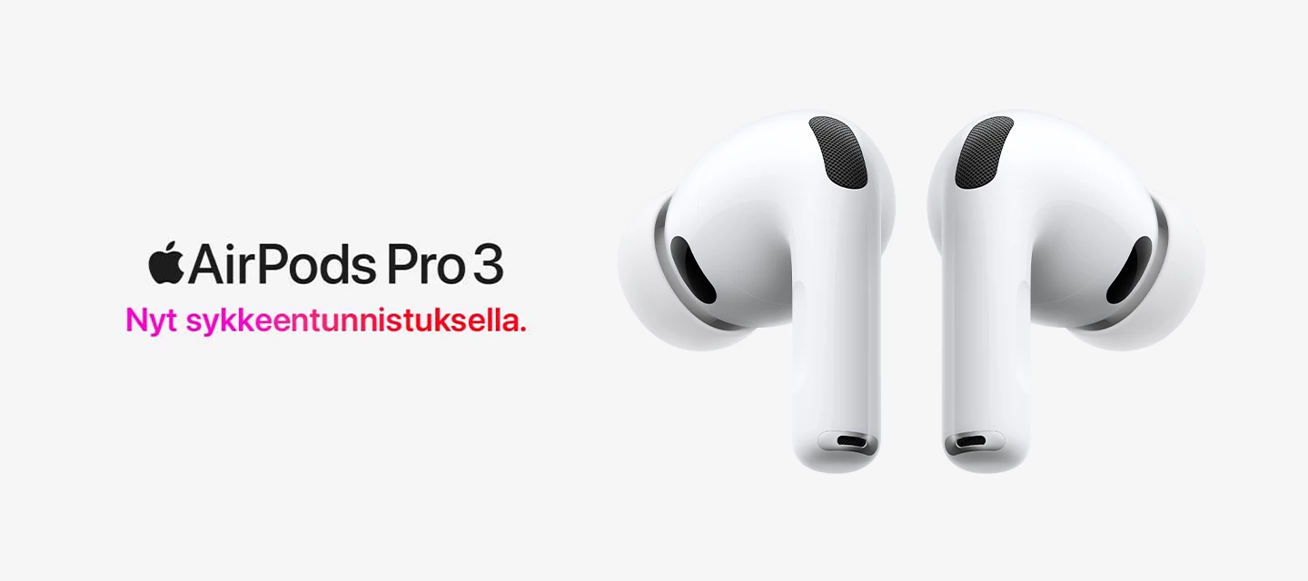 Apple julkaisi vuoden uutuustuotteet 9.9.2025 järjestetyssä Apple Eventissä, ja yhtenä odotetuimpana uutuutena esiteltiin AirPods Pro 3 -kuulokkeet. Uusi sukupolvi lupaa nostaa kuulokekokemuksen uudelle tasolle sekä äänenlaadun että älykkäiden ominaisuuksien osalta. AirPods Pro 3 -kuulokkeet on nyt ennakkotilattavissa verkkokaupassamme 🔊