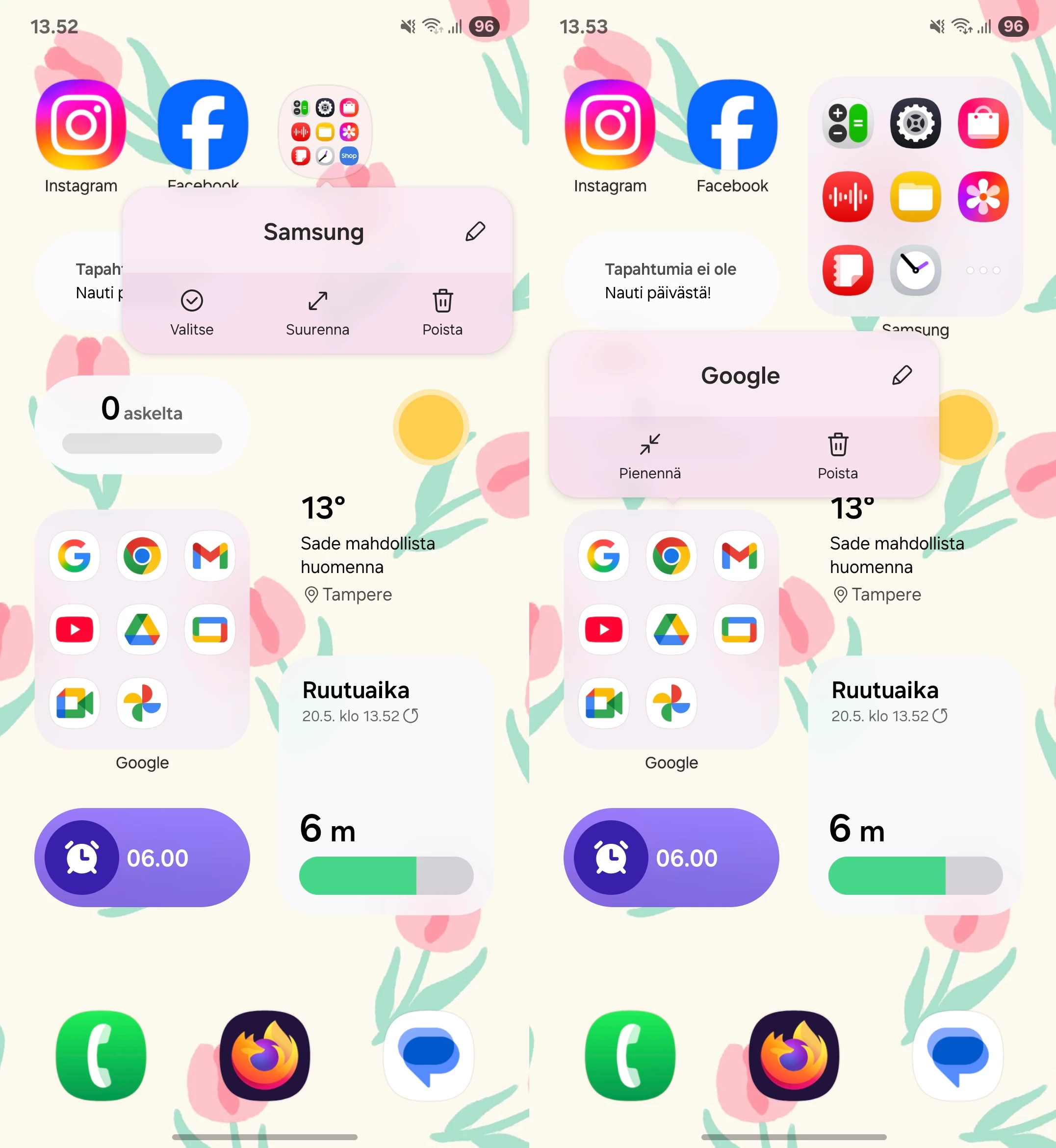 Samsung Galaxy -sarja esittelee odotetun kansio-ominaisuuden, jota vastaava ominaisuus on nähty aiemmin Applen iOS-käyttöjärjestelmässä. Kyseessä on toiminto, jolla pystyt muuttamaan alkunäyttösi kansioiden kokoa pienestä isoksi. Tämä ominaisuus helpottaa merkittävästi sovellusten saatavuutta ja käytettävyyttä suoraan kansiosta, ilman että kansiota tarvitsee avata erikseen.