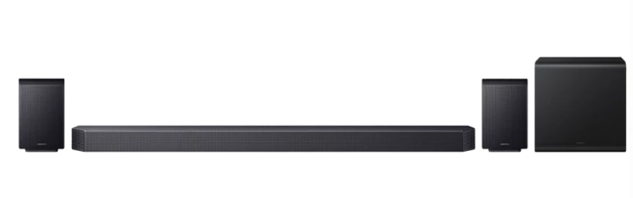 Samsung HW-Q935F/XE -kaiutinjärjestelmään sisältyvän soundbarin, subwooferin ja takakaiuttimien avulla tuot lähes elokuvateatterimaisen äänimaailman suoraan kotisohvallesi. Aidosti langaton 9.1.4-kanavainen äänimaailma ei jätä kylmäksi, vaan nostaa kohtauksien tunnelman sellaiseksi kuin elokuvaohjaaja on tarkoittanut.