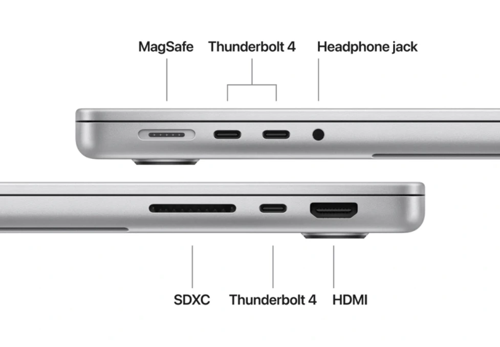 - Näyttö: 14,2” Liquid Retina XDR, True Tone -teknologia, 120 Hz mukautuva virkistystaajuus