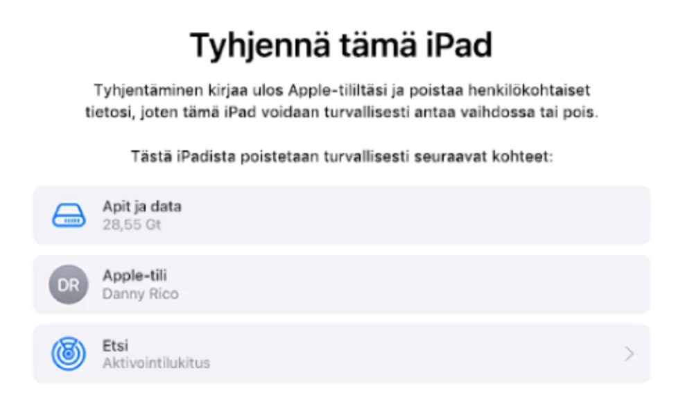 Ostin itselleni uuden IPadin. Vanhan tyhjensin kaikesta henkilökohtaisista tiedoista ja nollasin sen Applen ohjeiden mukaan.