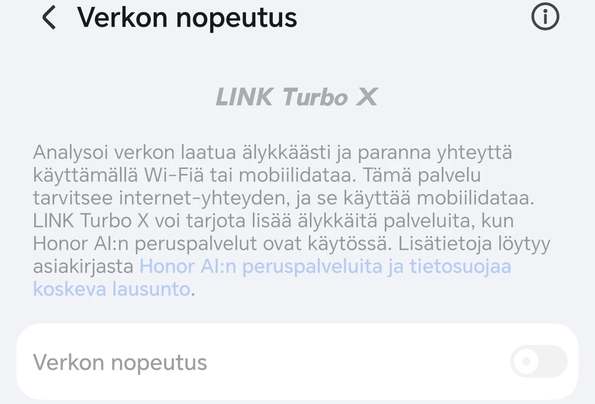 Operaattori ei tue verkon nopeutusominaisuutta.