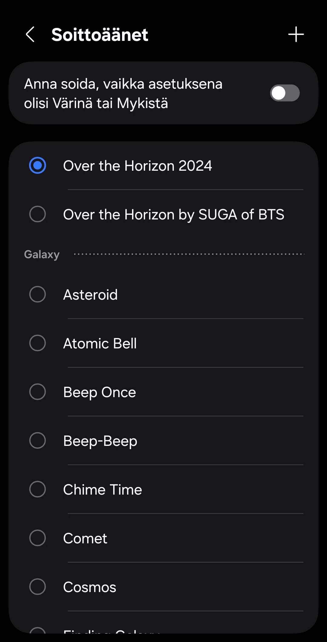 Minulla oli vanhassa puhelimessa soittoäänenä Beatlesin Help. Vaihdettuani Samsung Galaxy S25 Ultraan, en ole onnistunut valitsemaan soittoääneksi musiikkikappaletta. Saan auki valikon, jossa ovat kaikki puhelimella olevat kappaleet, mutta niiden valinta ei onnistu. Saan vain virheilmoituksen “ Soitin ei tue tätä äänitiedostotyyppiä” tai “Valitu kohokohdat-toiminto ei tue kappaletta”