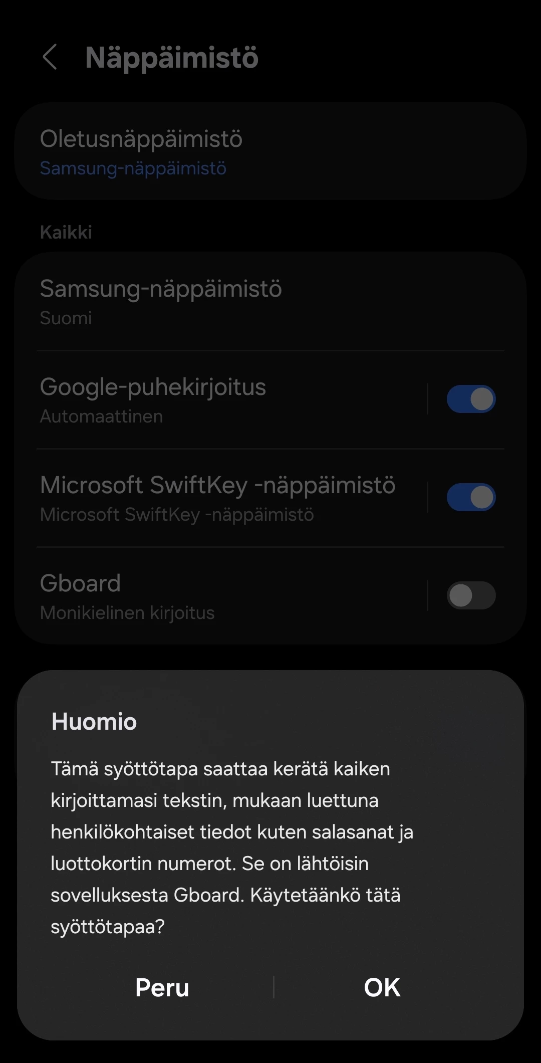 Haluaisin vaihtaa Samsung näppäimistön johonkin toiseen, vaikka Googlen vastaavaan - en vaan osaa.Jos kellä samanlainen puhelin ja osaa vaihtaa, olisi vinkit tervetulleita.