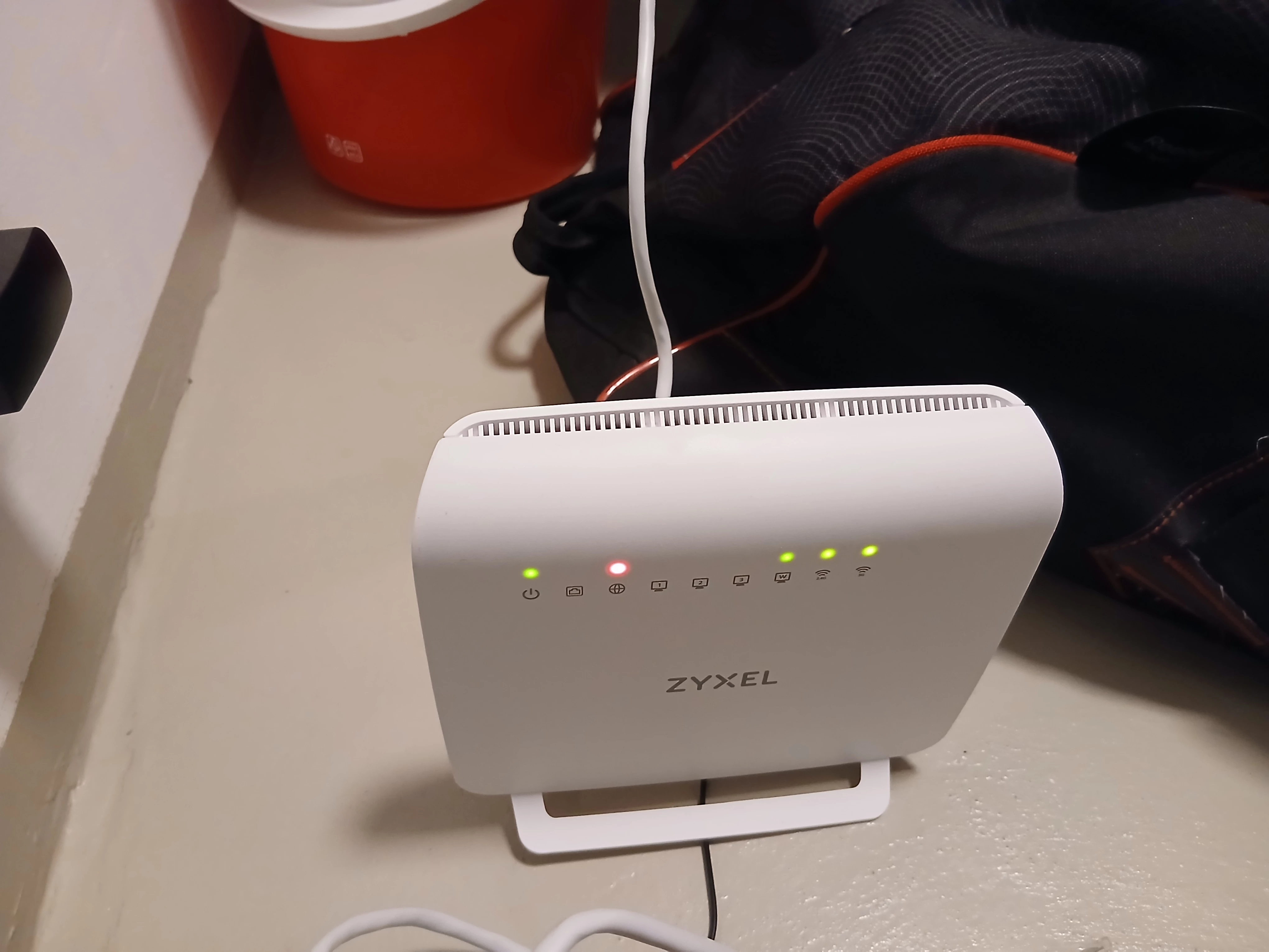 Ostin Telialta otsikon ja kuvien mukaisen reitittimen. Meillä on ok. talossa toisen operaattorin valokuitu, josta tulevan netin kytkin kuvan mukaiseen porttiin. Tarkistin tietokoneeseen liittämällä, että tuohon piuhaan joka on tuossa kiinni tulee netti.