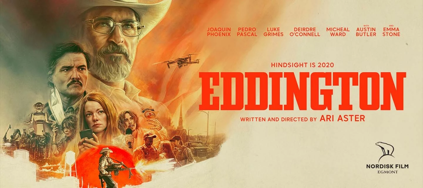 Eddington (2025) on Ari Asterin ohjaama ja käsikirjoittama yhteiskunnallinen western yhdistettynä trilleriin, joka sijoittuu kuvitteelliseen Eddingtonin pikkukaupunkiin New Mexicossa koronapandemian alkuvaiheessa keväällä 2020. Elokuva yhdistää draamaa, jännitystä, lännenelokuvan elementtejä ja mustaa komediaa. Hyppää sohvalle, laitetaan popparit kulhoon ja pääset katsomaan erilaista elokuvaa!