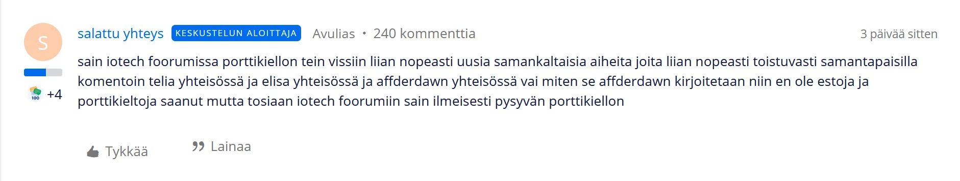 Muokkaus SannaMKoo: Lisätty käyttäjämaininnat ja muokattu viesti pois lainausmuodosta
