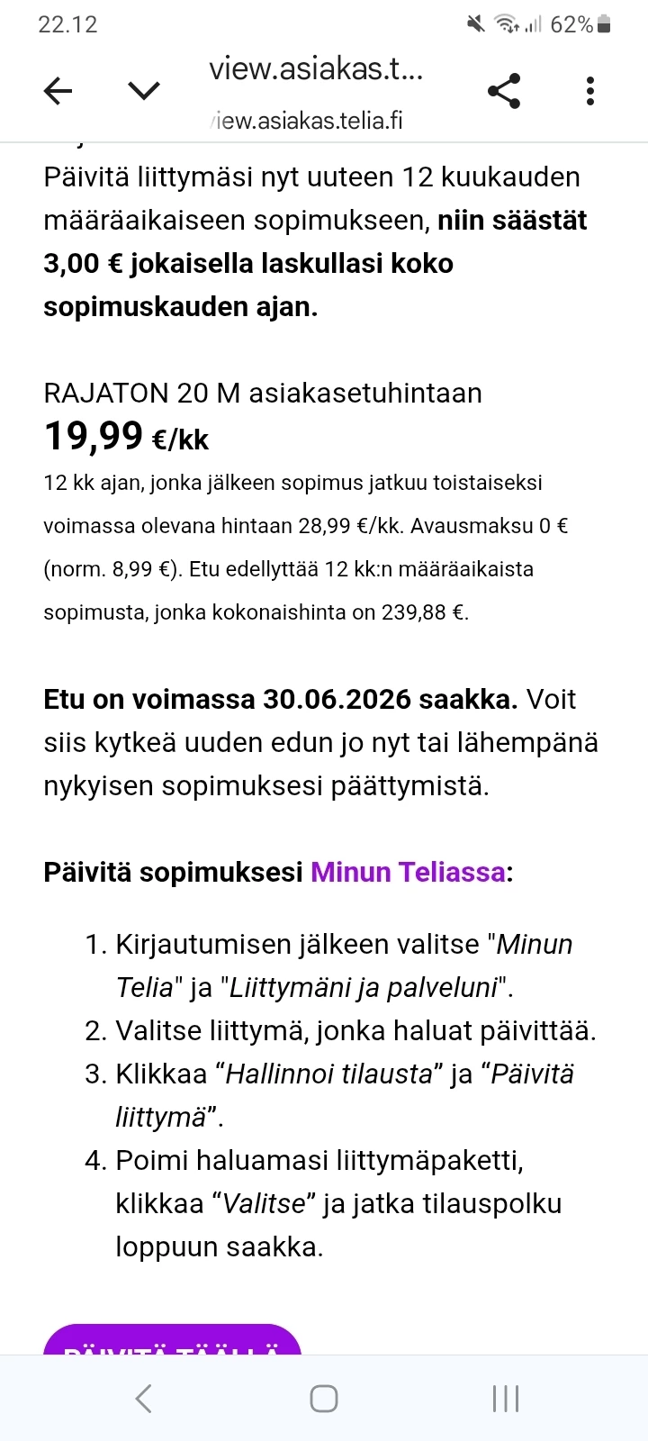 Varmaan pitää harkita pikku hiljaa Elisalta puhelinliittymä ja muutkin palvelut.🫣😬
