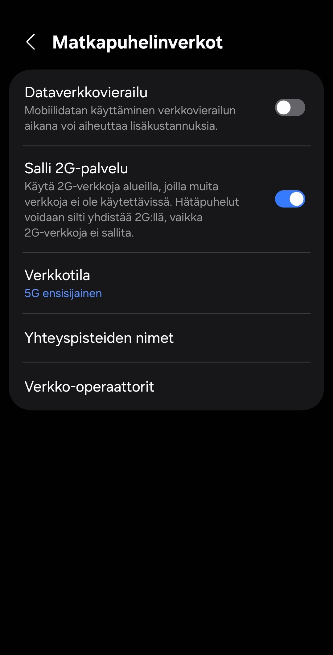 - datanopeus on laskenut neljäsosaan entisestä 5G:n ja yhteisverkon tulon myötä