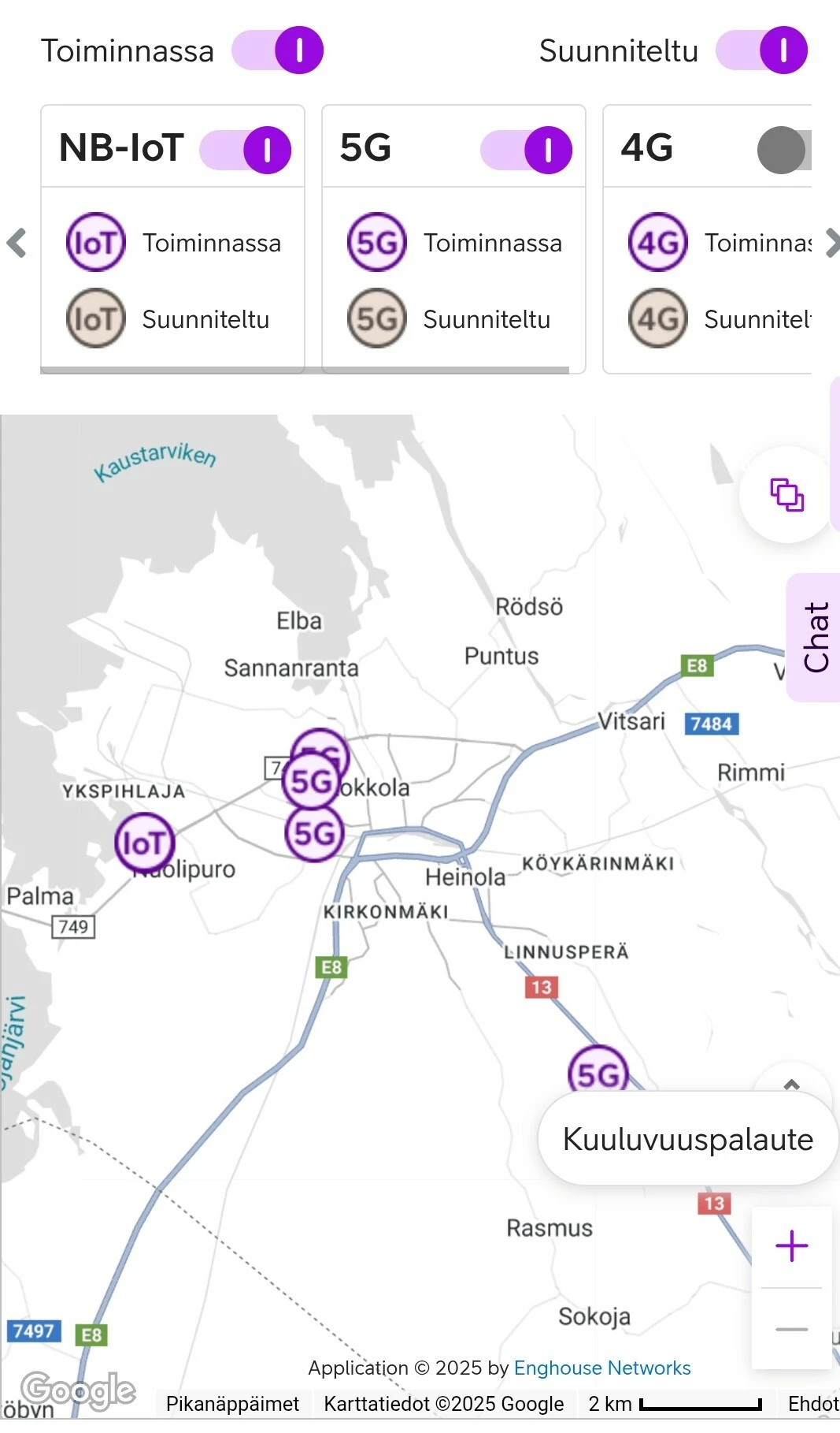 Kun omistat 5G-liittymän voit olla varma siitä, että minne ikinä menetkin sinulla on käytössäsi aina alueen paras verkko. Verkko toimii vakaammin myös isoimmissa massatapahtumissa. Valmistaudu siis festarikesään päivittämällä liittymä 5G-aikaan. 5G-nopeuksilla voit surffata jo liki 170 paikkakunnalla. Verkkomme alueella asuu jo yli 3,7 miljoonaa suomalaista. Voit käyttää 5G-verkkoa reissatessa jo 43 eri maassa.