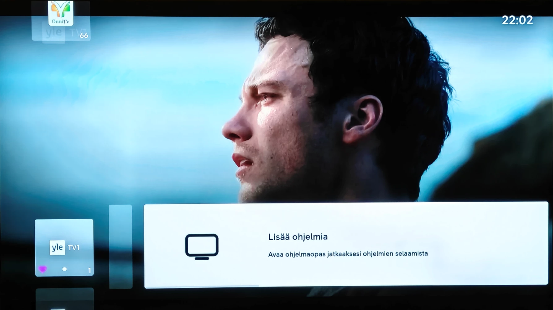 Ja meneepä oikealle tai vasemmalle Kanavat-listauksessa, ei ohjelmatietoja löydy. Vain mahdollisuus ohjelmaoppaan avaamiseen: