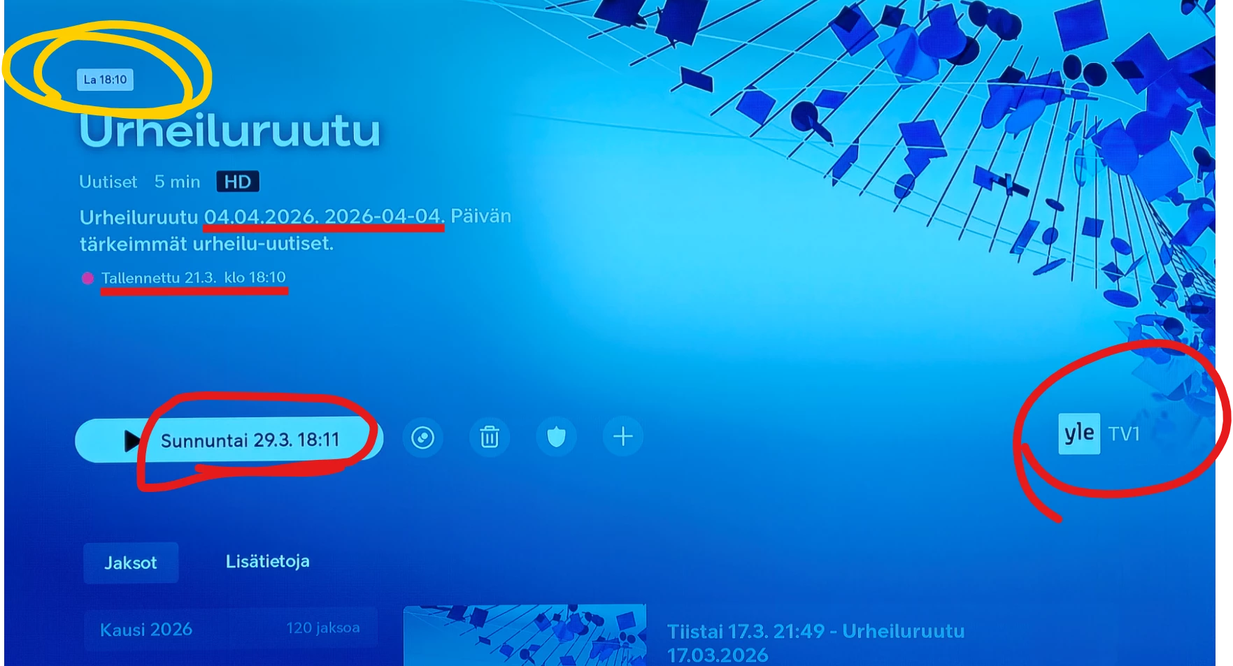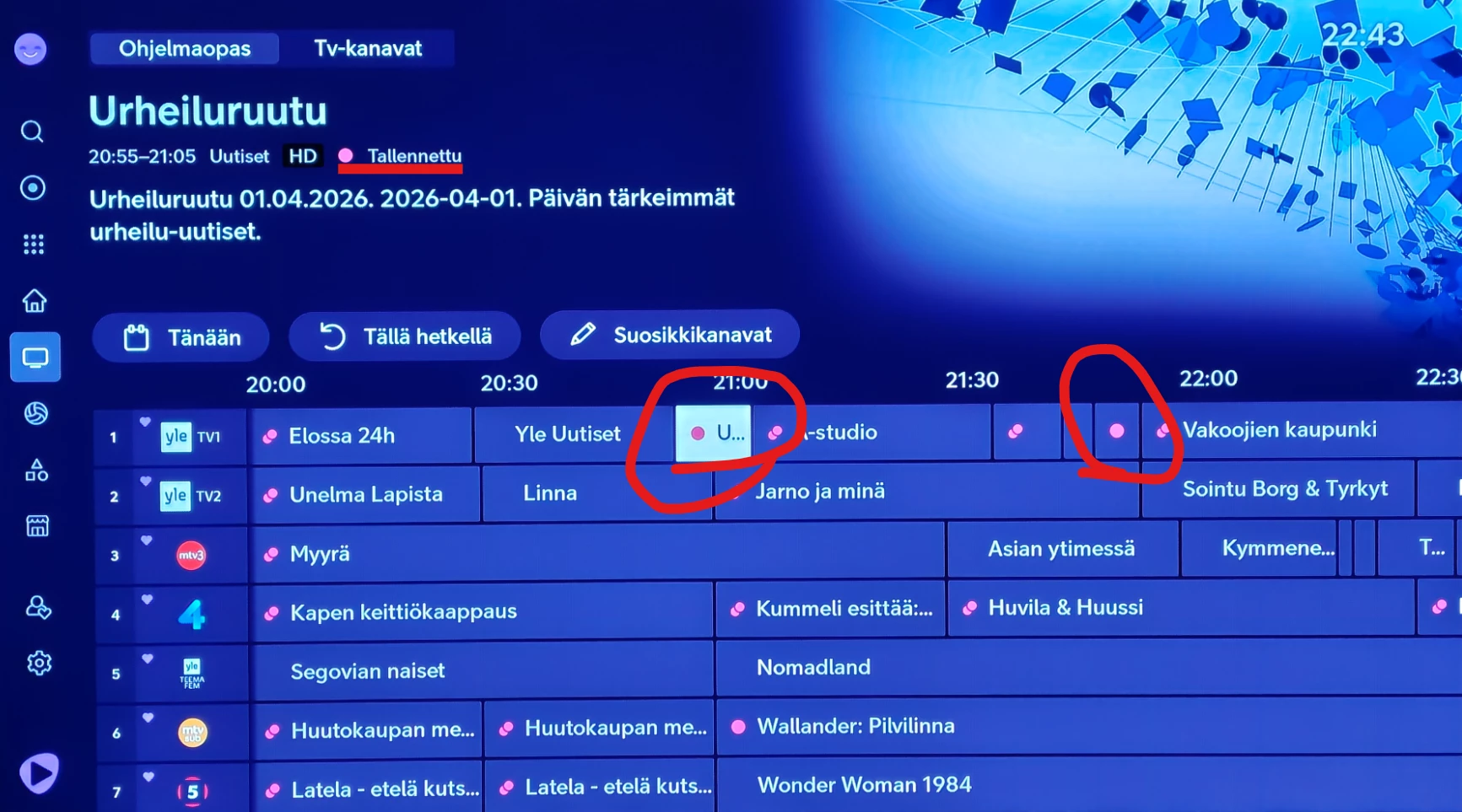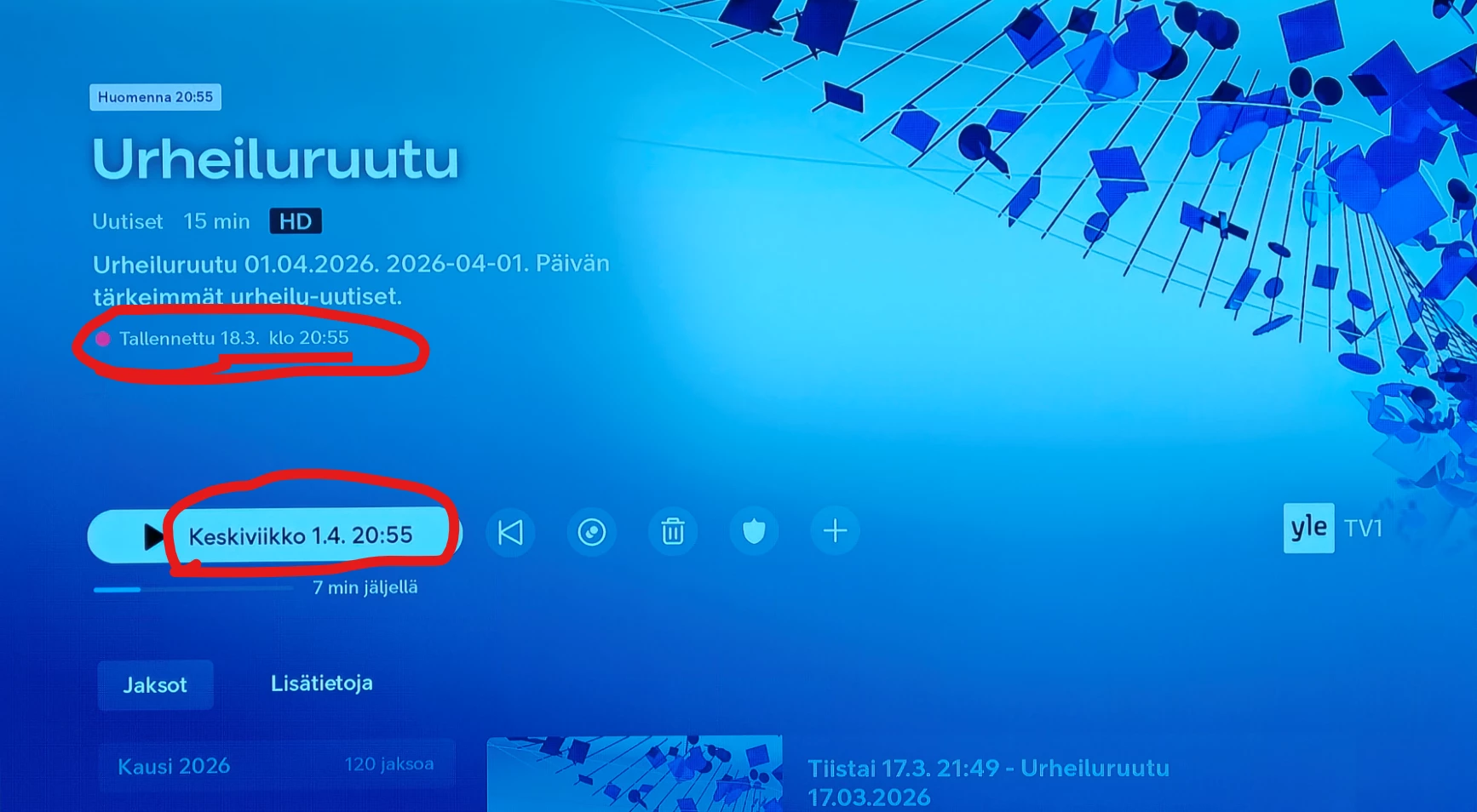 Miksi siis tämäkin tehty näin oudosti ja monimutkaisesti ja vielä erityisesti kytkös noiden YLE-kanavien välillä aiheuttaa kyllä vain sekaannusta ja ylimääräisiä tallennuksia ja uusintojen tallennuksia sotkemaan muutoinkin sekavaa tallennusrumbaa??