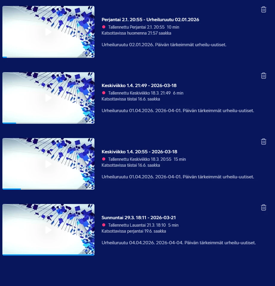 YLE:n kanavat ovat tallennusten kera ihan oma tarinansa. Esim. Ulkolinjan kun olen laittanut sarjatallennukseen kanavalta YLE TV1, siltikin sama sarjatallennus koskee kanavia YLE TV2 ja YLE TEEMA/FEM.