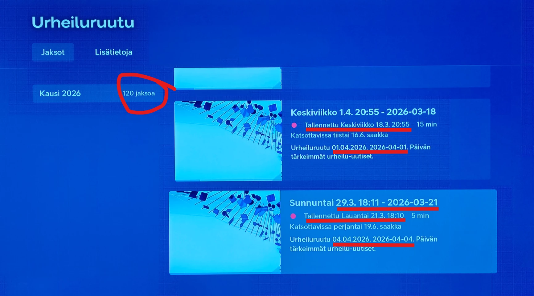 Kappas mokomaa, sarjatallennuksen merkki poistui, tilalle jakson tallennus: