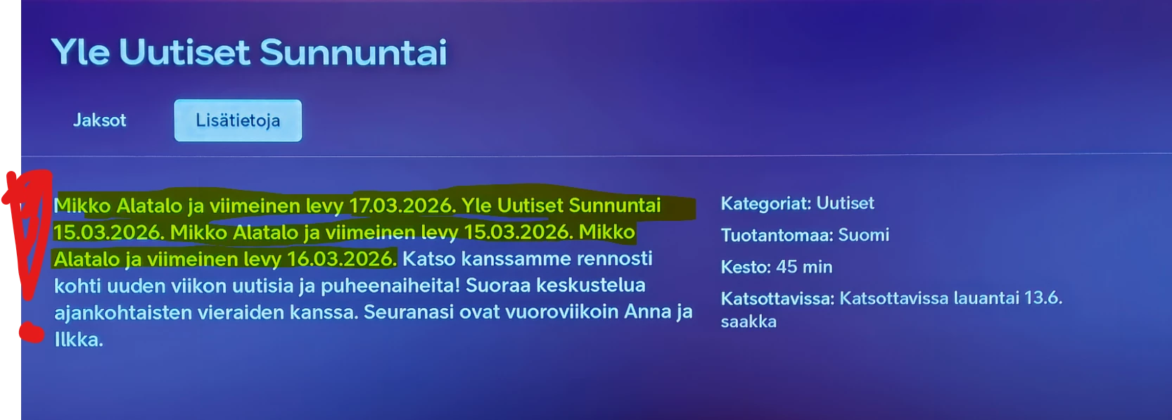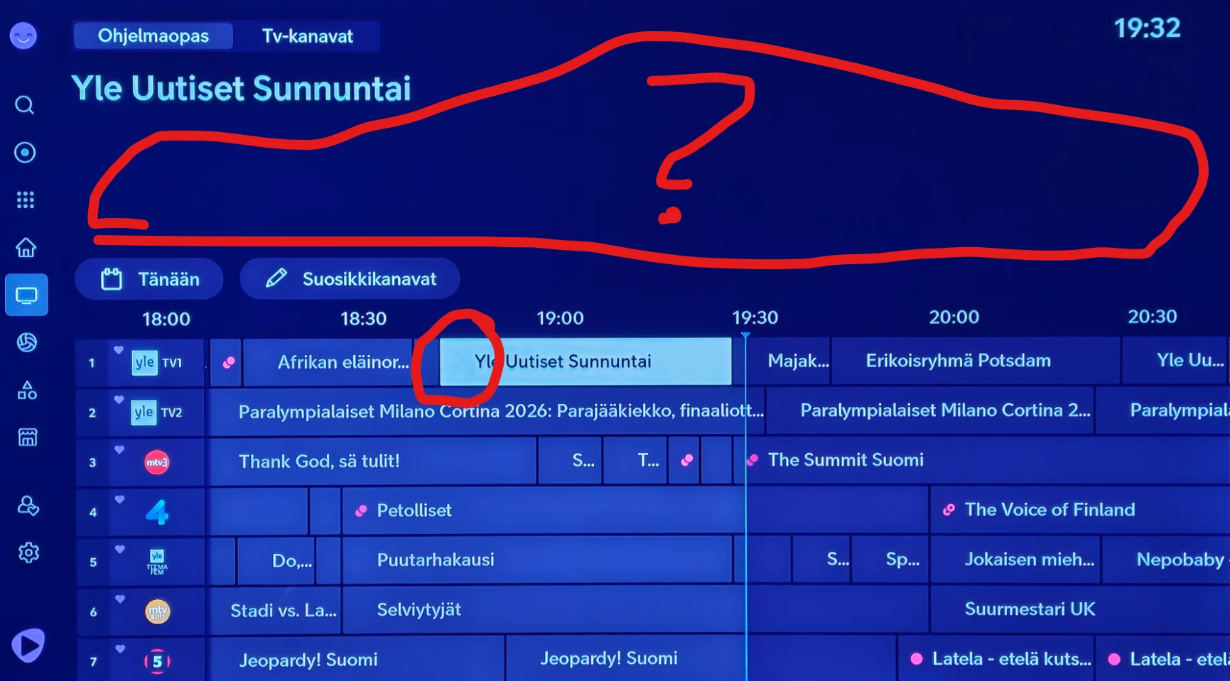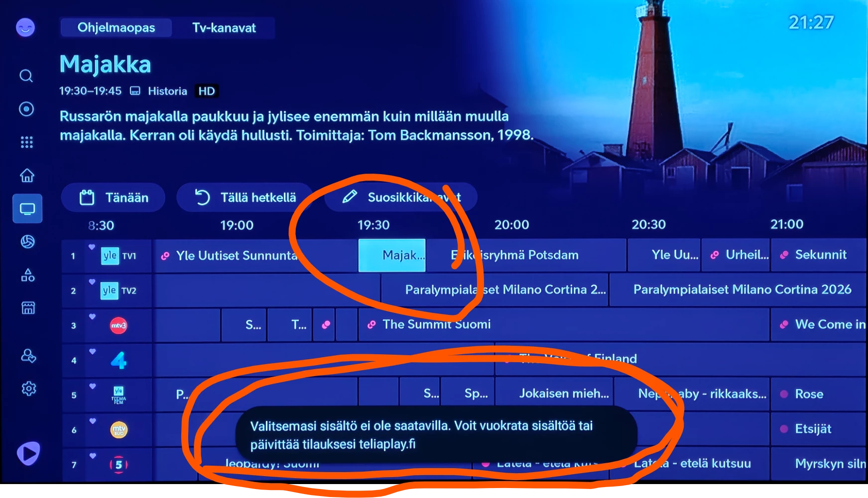Paljon on sitten tämmöistä. IIlan mennyttä ohjelmatarjontaa. Aika reikäistä. Ja tuohon aikaan ollut jokaisella kanavalla ohjelmaa!