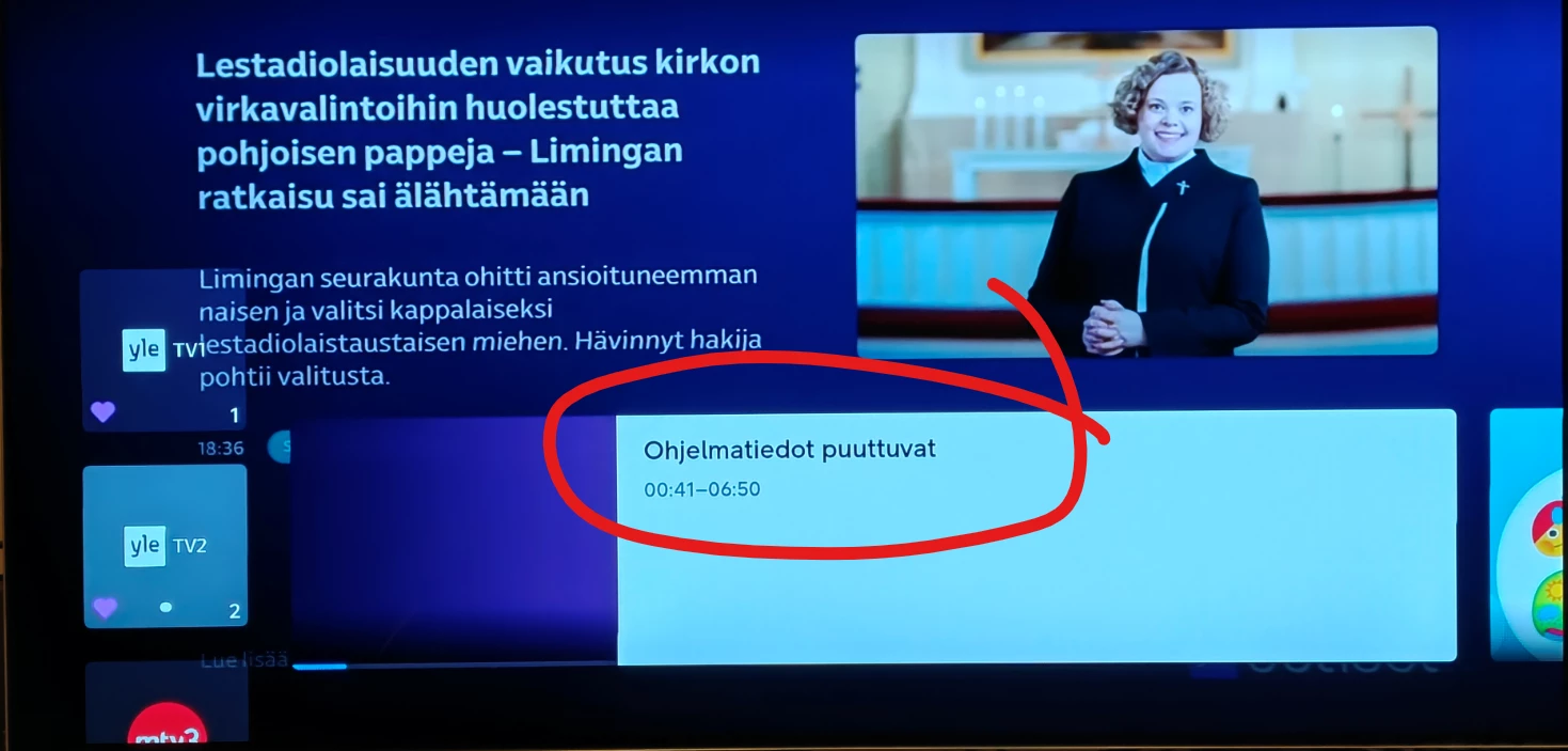 Mikä on se syy että jos on kanavalla jossa ei ole ohjelmatietoja juuri nyt, ei voi avata ohjelmaopasta???