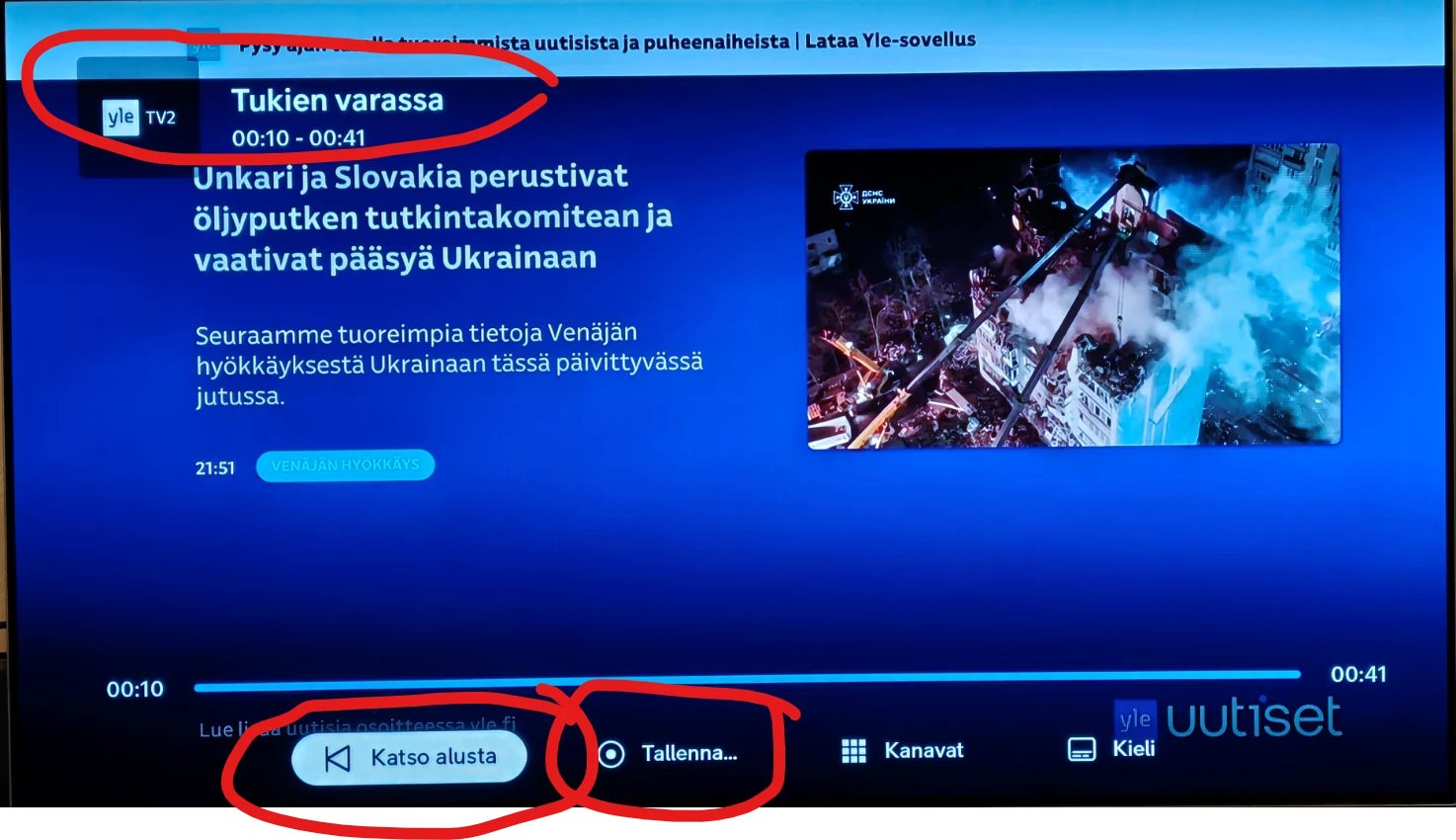 Edelleenkin ruudulla näkyy sen hetki sitten päättynen ohjelman tiedot kun painaa [OK] ja edelleenkin vaihtoehtoina katsoa ohjelma alusta tai tehdä tallennus..