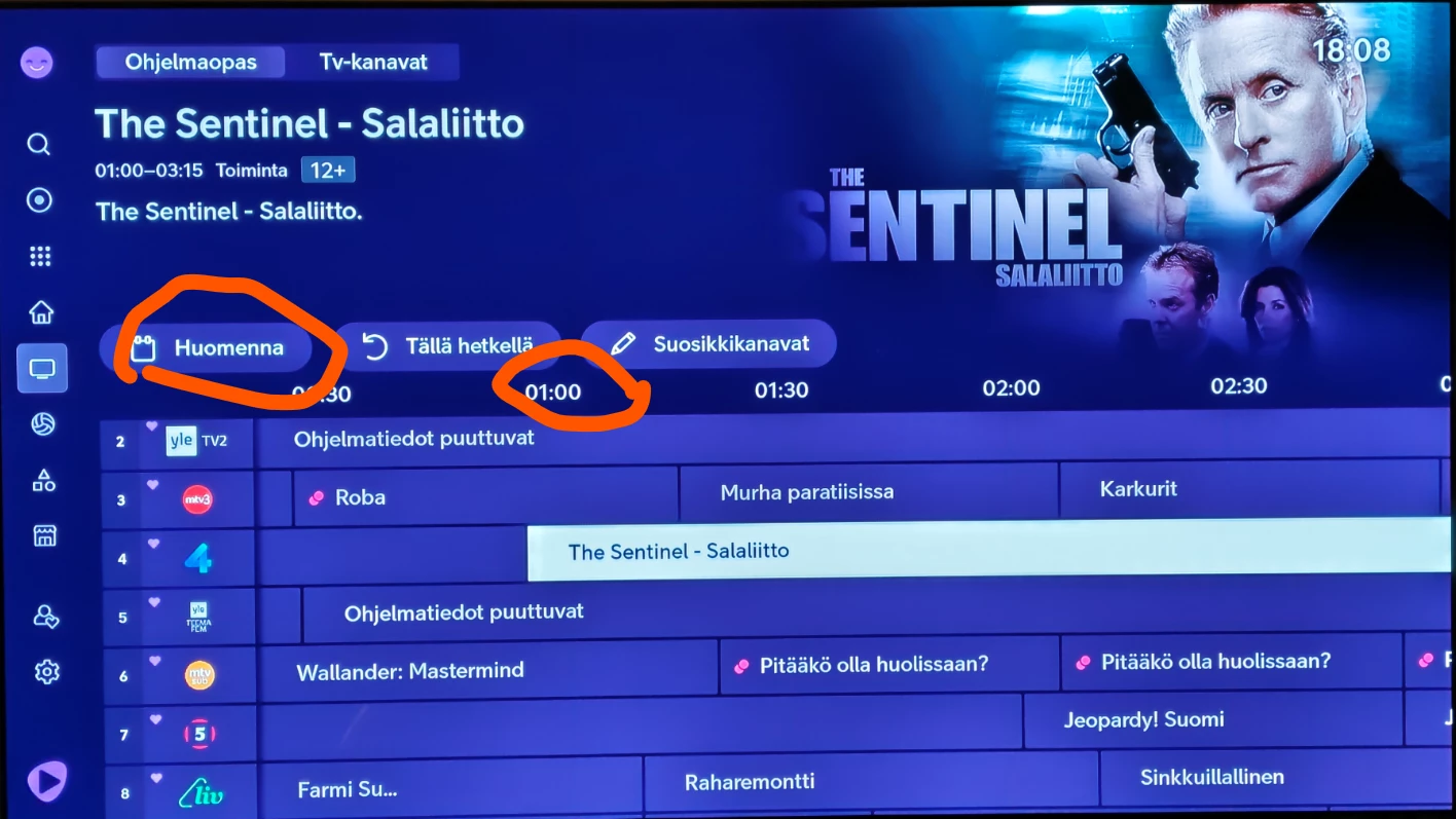 Illan ohjelmia EPG:stä tarkistelin ja katsottavaa illaksi. The Sentinel alkais huomisen puolella klo 01:00 - pitääpä se laittaa tallennukseen kun ei varmaankaan jaksa valvoa…