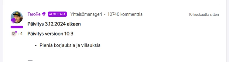 Ja olisi ihan kiva tietää päivityksistä tarkemminkin kuin “Pieniä viilauksia ja korjauksia”.