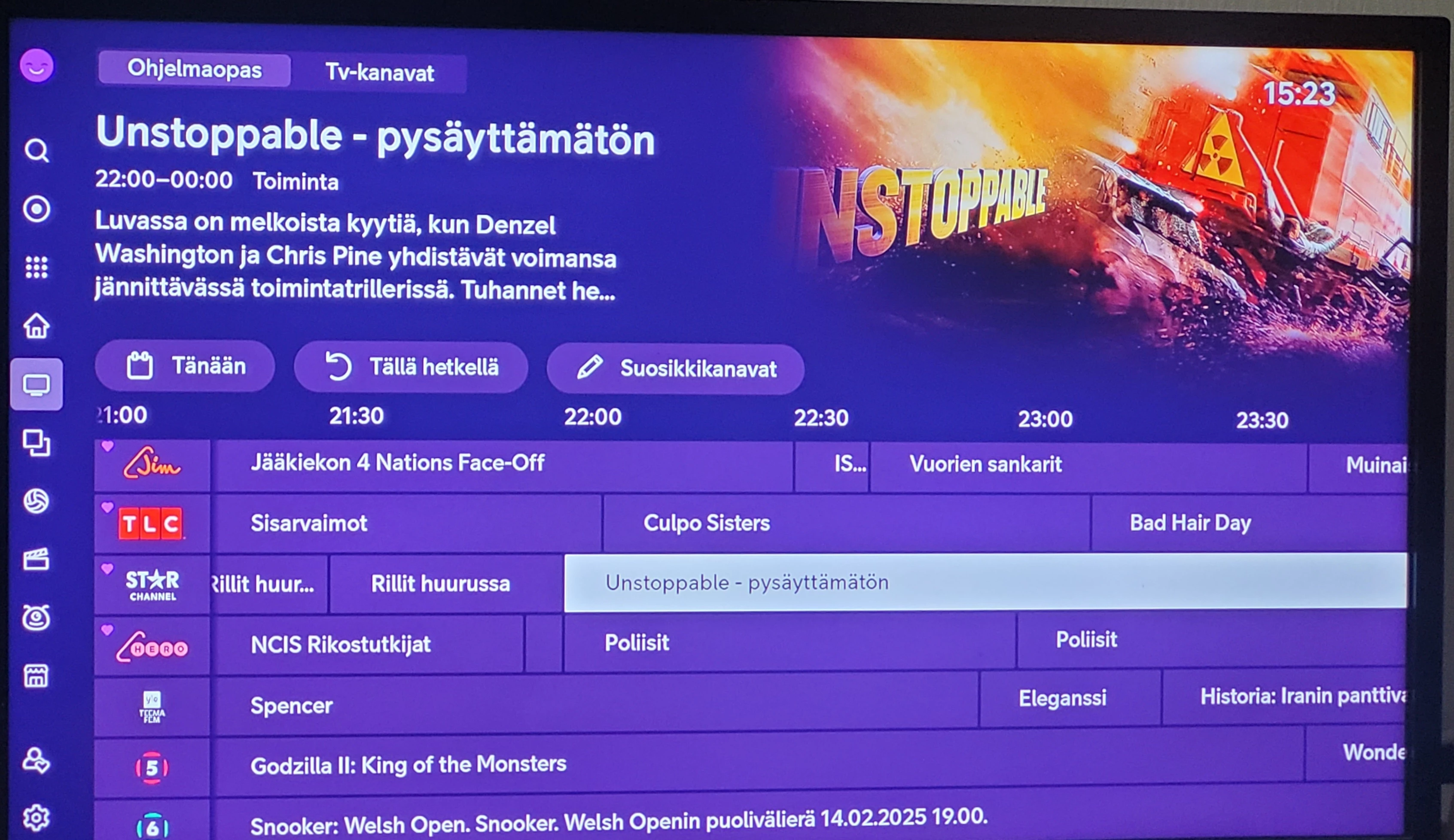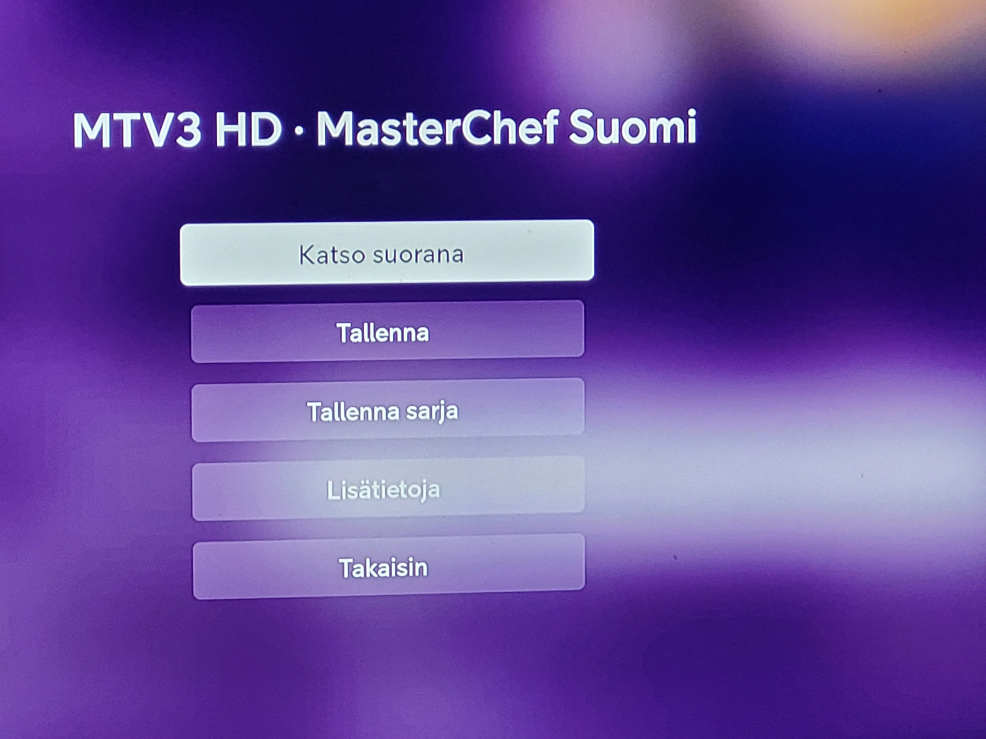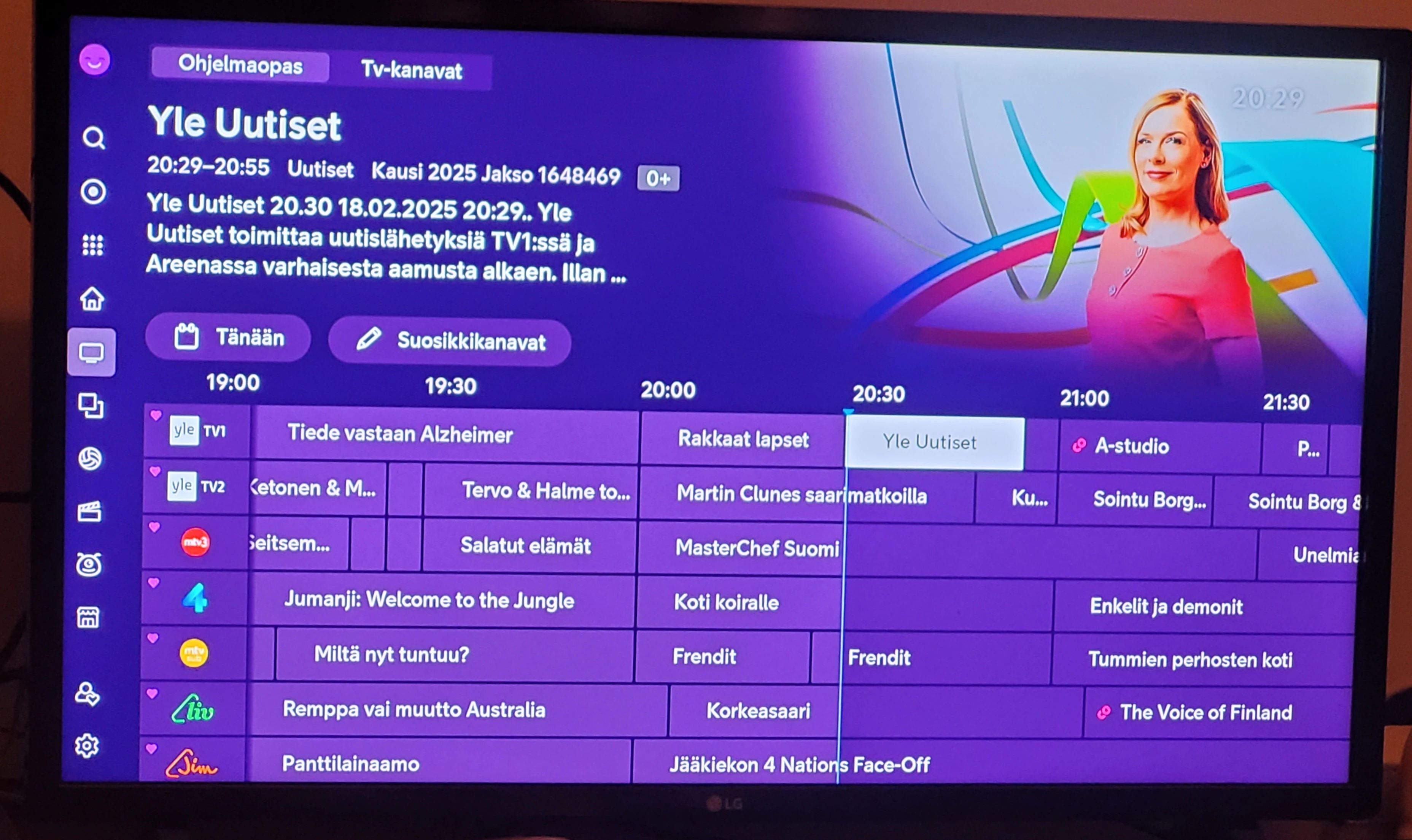 Saat laajennettua ohjelmatiedot ohjelmaoppaassa valitsemalla haluamasi ohjelman ja sitten ‘Lisätietoja’. Kerrothan, onnistuiko tämä! 😊