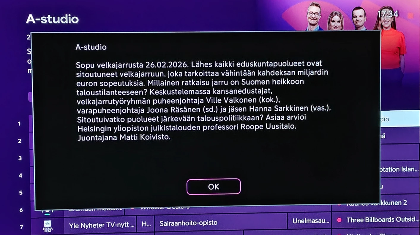 Siis miksi tuo tieto ohjelmista on kokonaan kadotettu - DV8919X:n lisäksi myös mobiili- ja selainsovelluksista.