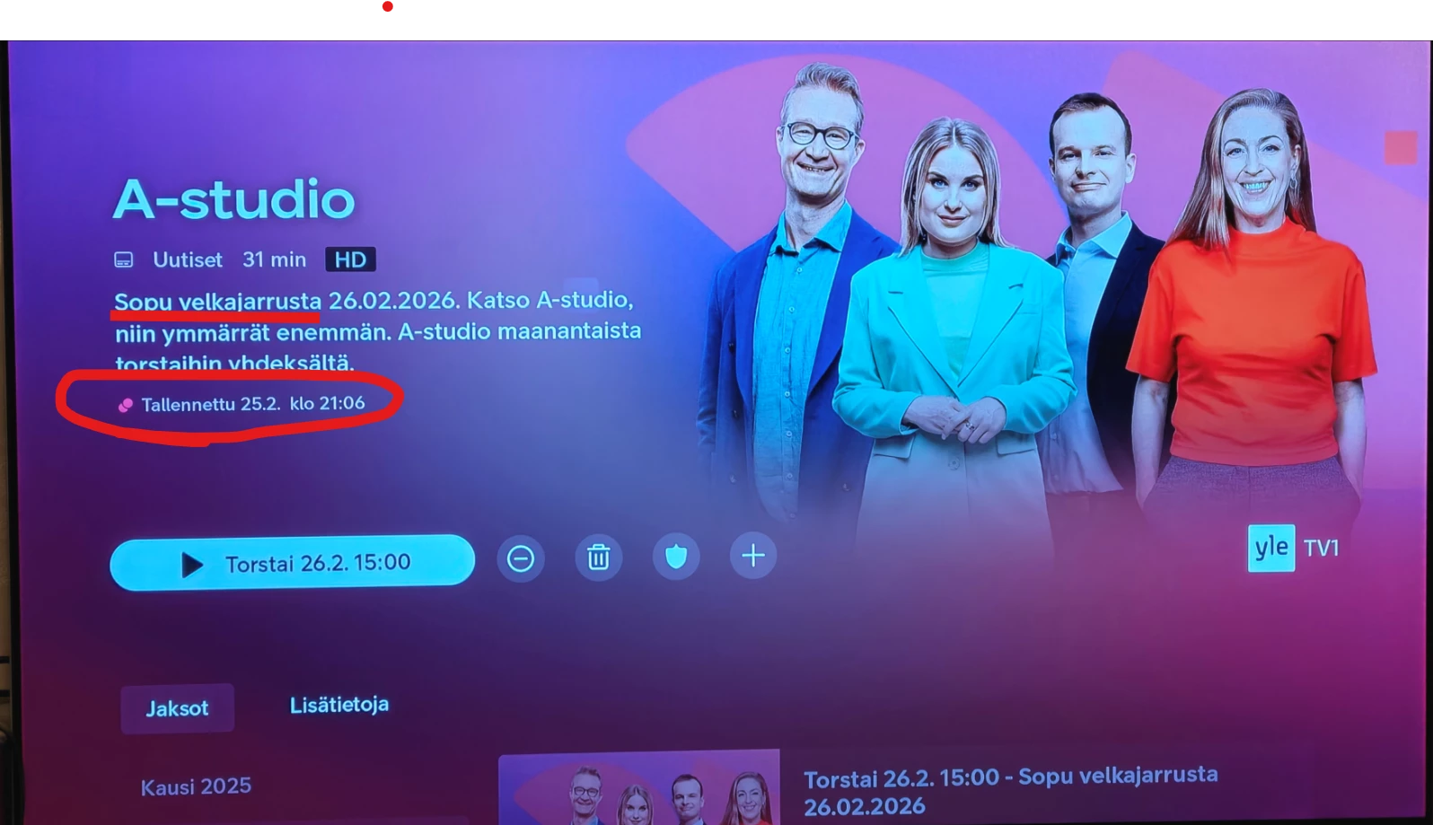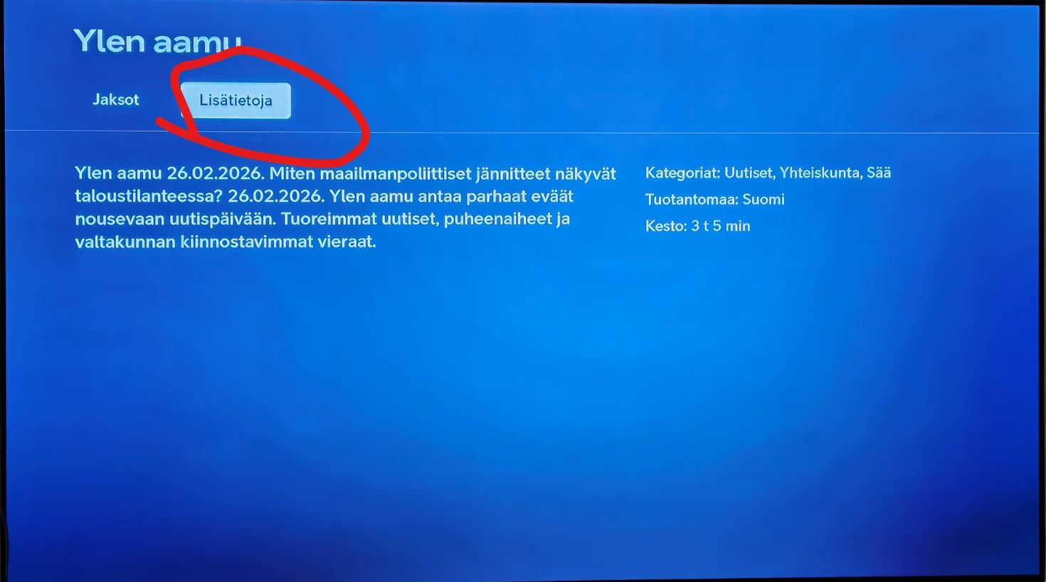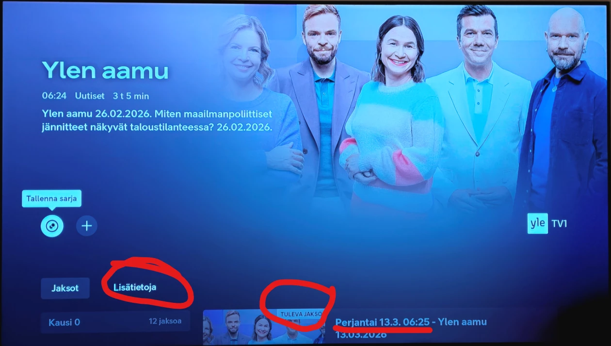 Eiku onhan siellä joo - kahden seuraavan viikon tulevat jaksot, vieläpä ensimmäisenä listassa se jakso kahden viikon kuluttua😱- noitahan ei voi ohjelmaoppaasta edes löytää kaikkia… kertakaikkiaan upeata “Lisätietoa”🤢