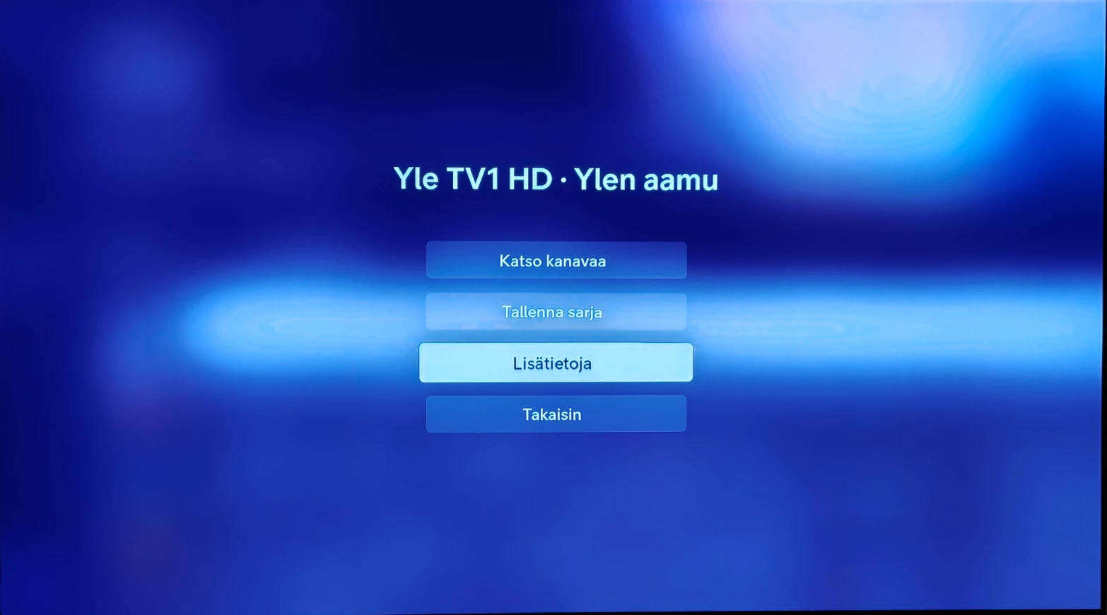 HUOM! kun tässä nyt kyseessä tämänaamuinen ohjelma, Arriksessakin täytyy mennä ohjelmaoppaaseen mutta siellä sitten [INFO]-näppäimellä se etsitty löytyy: