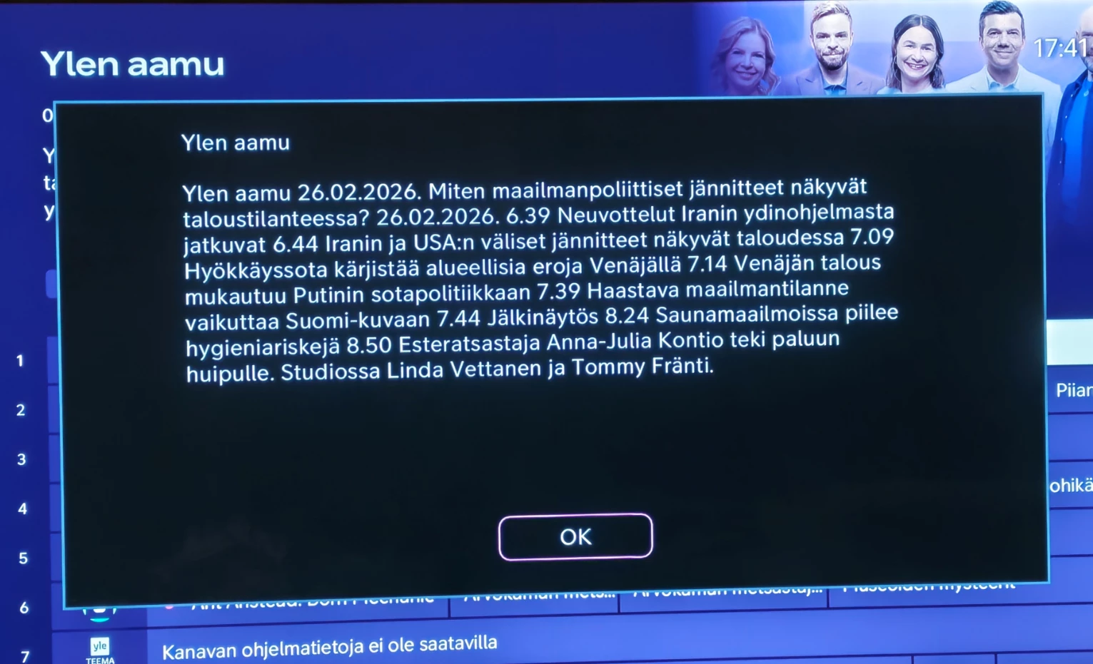 Ohjelman kohdalla kaukosta [OK]:
