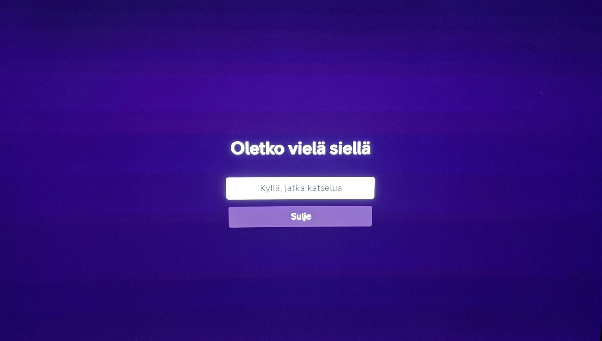 Kuka on vastuussa "Oletko vielä siellä?" "Kyllä jatka katselua"/ "Sulje" -popupista Telia TV:ssä, joka katkaisee tv-lähetyksen, kun sama kanava on ollut päällä muutaman tunnin (n. 4-5h jälkeen)?