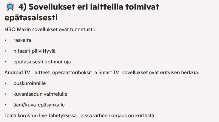 “Tosiaan voi olla hyvä kysäistä asiasta Telialta, sillä tuemme Android TV:stä viimeisintä kahta versiota (uusin on 16, mutta laitteesta riippuen myös 13 voi olla tuettu).”