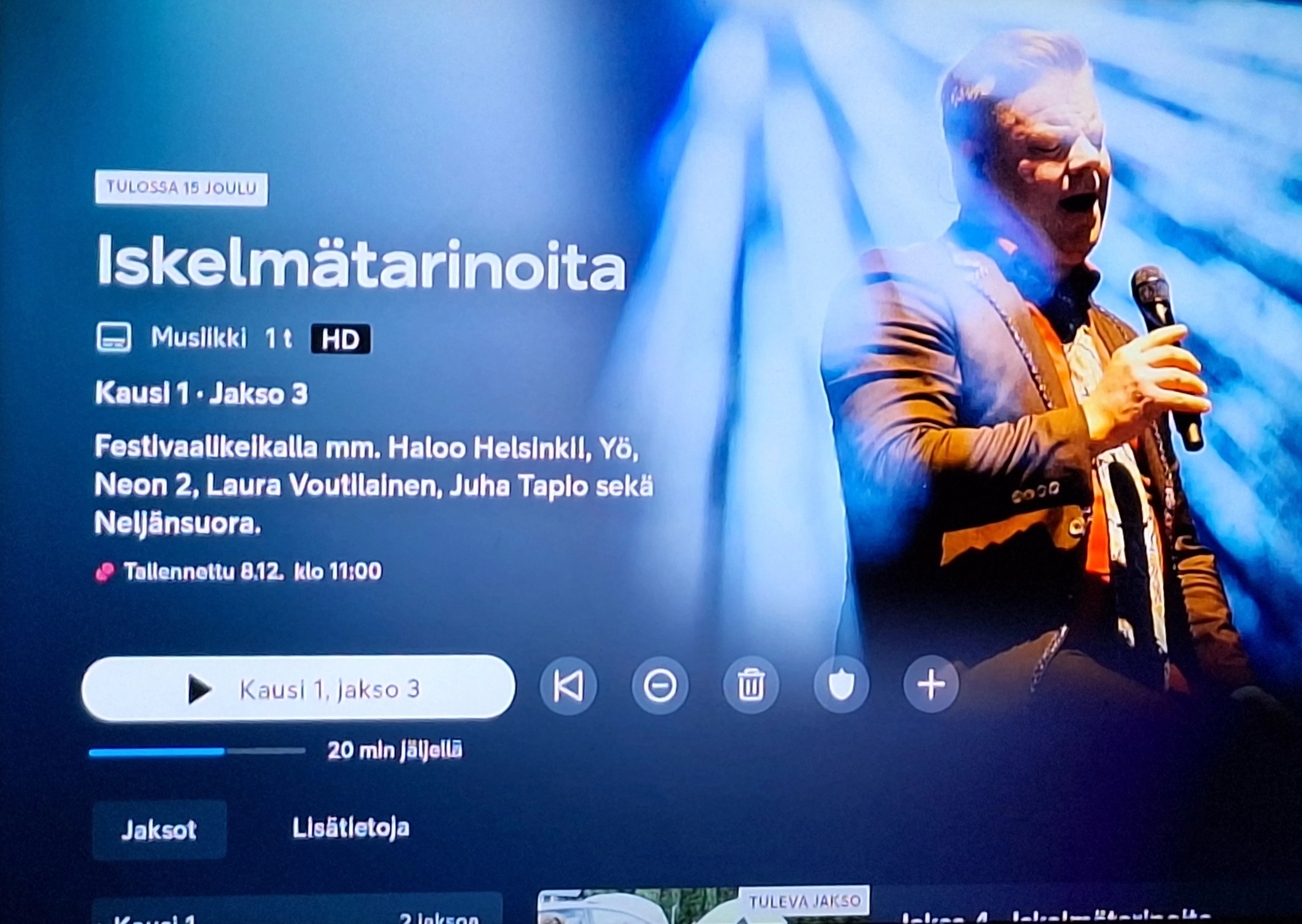 Tallennos oli kuten kuvassa näkyy. En ollut katsonut ohjelmaa vielä ollenkaan. En myöskään ollut tallentanut kyseistä sarjaa aiemmin vaan oli ihan ensimmäinen tallennus. Kelasin alkuun ja on muuten ihan ok.