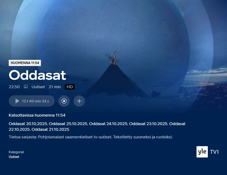- YLE:llä TV1:llä Ylen Aamu, MOT, A-Studio, Puoli