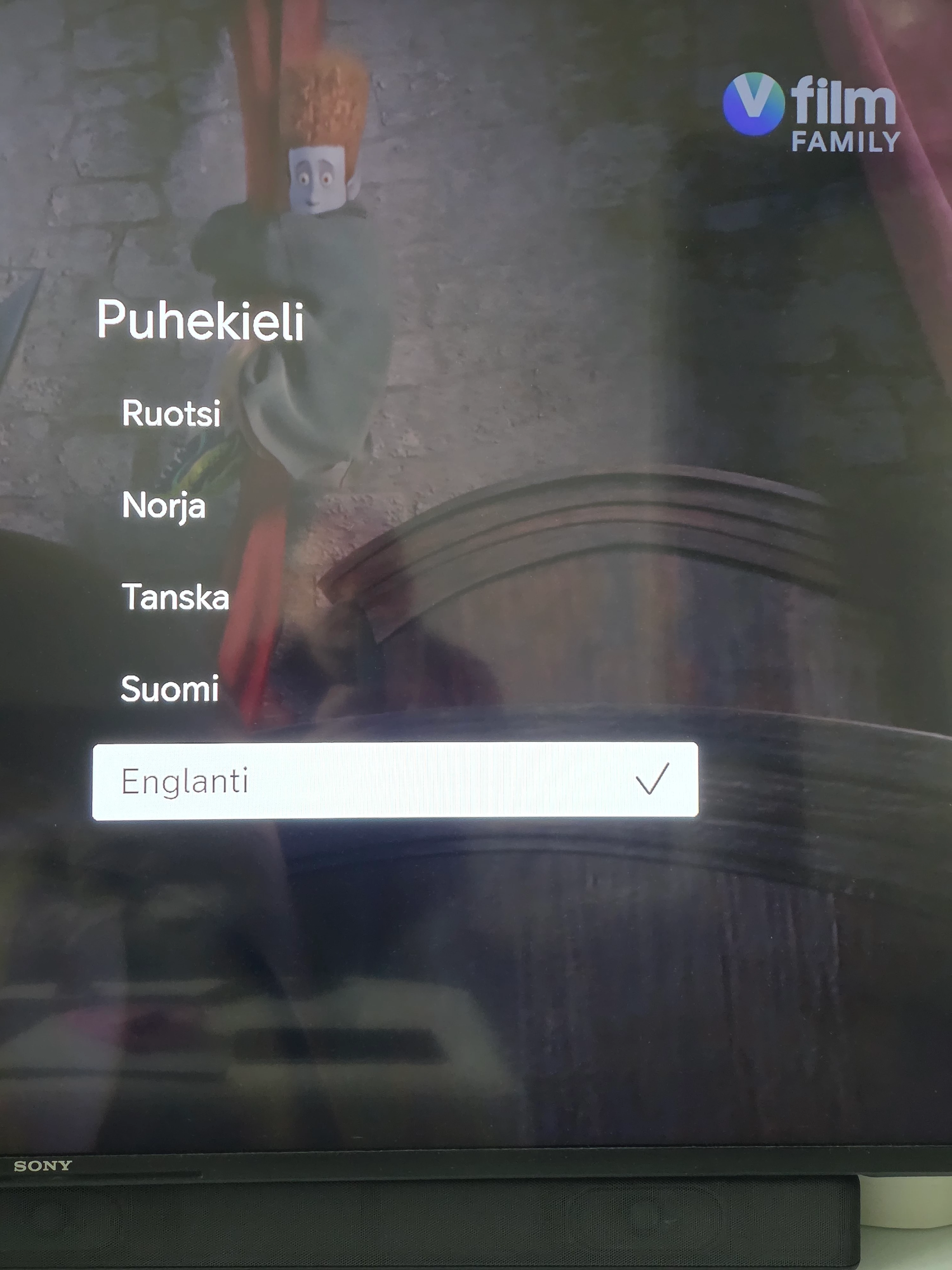 Testailin täältäkin, ja parhaillaan käynnissä olevaa Hotel Transylvania ei tosiaan saanut kuin suomeksi tai ruotsiksi. V Film -kirjaston kautta kielivalinnaksi sai myös englanniksi puhutun version, ja sieltä se lähtikin ihan oikein englanninkielisenä myös toimimaan.