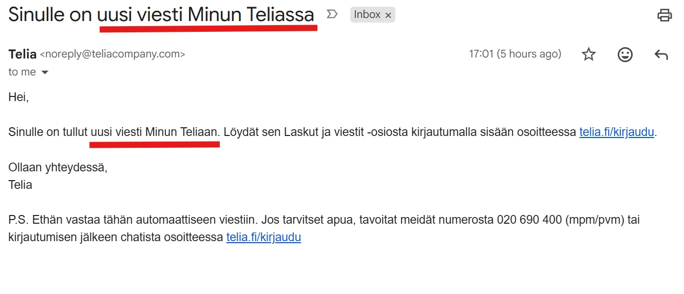 Sain tänään sähköpostia Telialta: