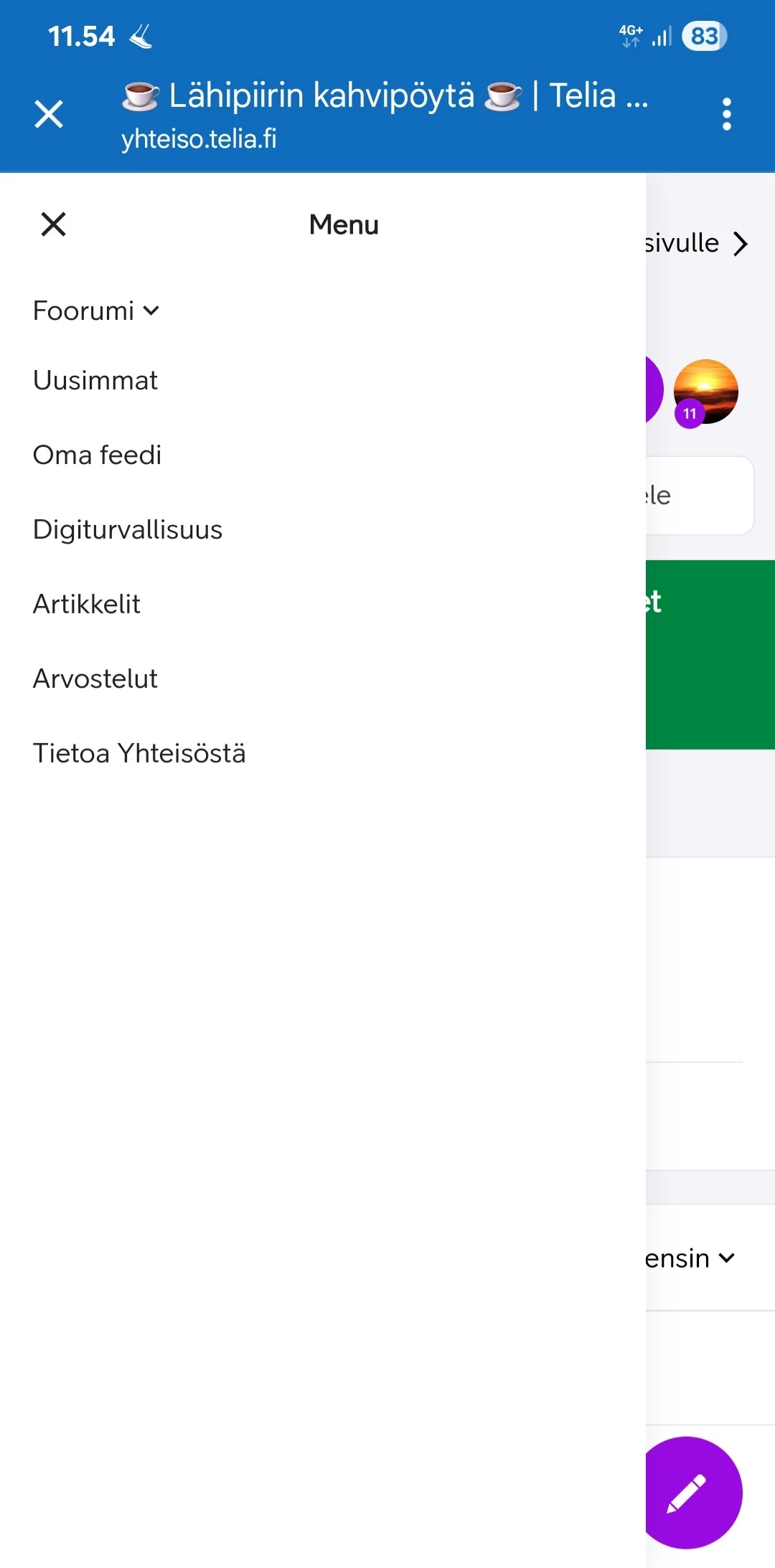 Kuvat kertovat asian parhaiten. Skrollaten kaikki löytyy, mutta pitäisi löytyä heti ilman skrollaamista. Siis kun haluaa avata Foorumi sanan nuolesta. Toimiiko muilla tuo samoin? Ollut jo muutaman päivän tuolleen.